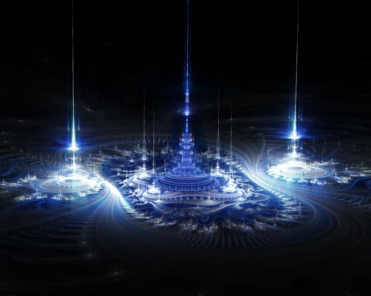 Blue fractals on a black background