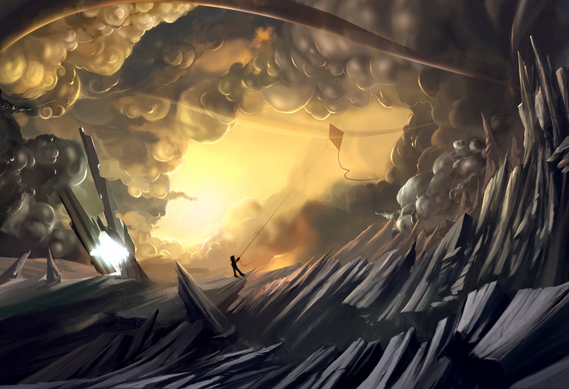Drawing of a boy looking at a crescent moon in a dark forestDrawing of a boy looking at a crescent moon in a dark forest
