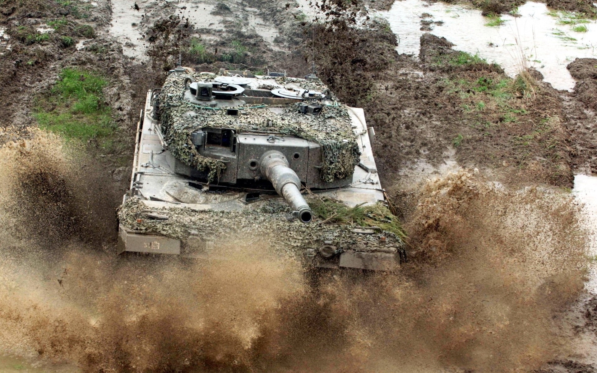 A disguised tank in a muddy puddle