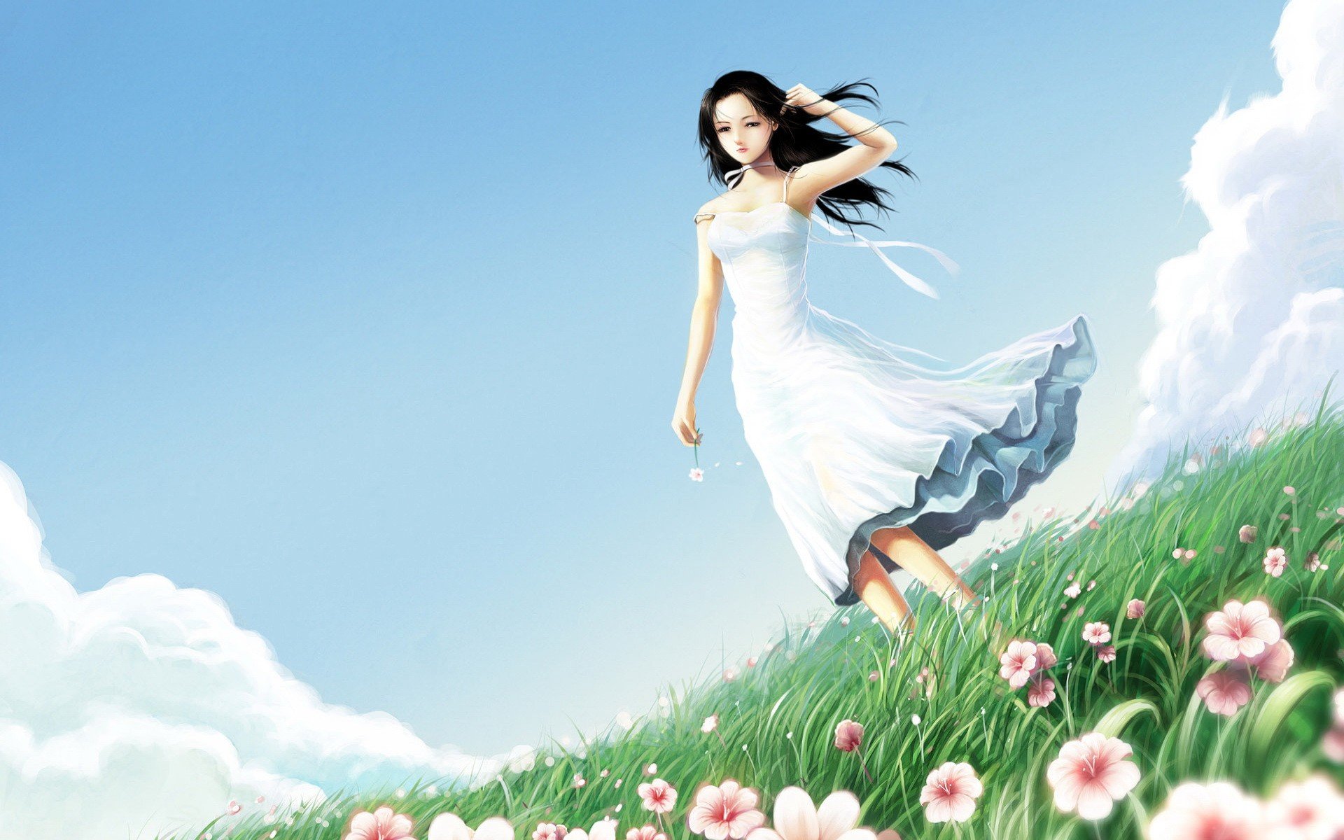 Drawing of a girl in the grass with flowers