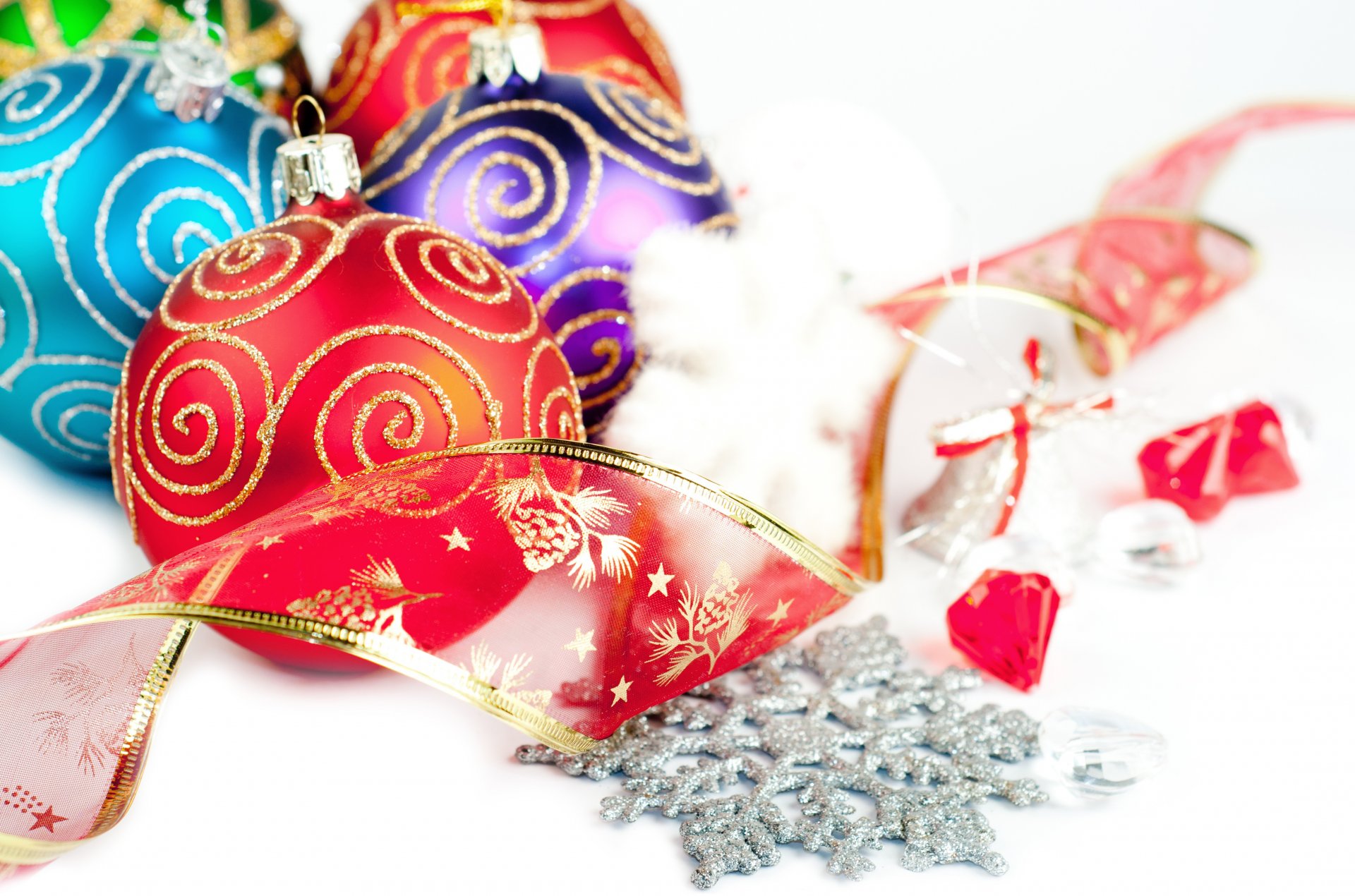 Colorful Christmas balls and snowflakes