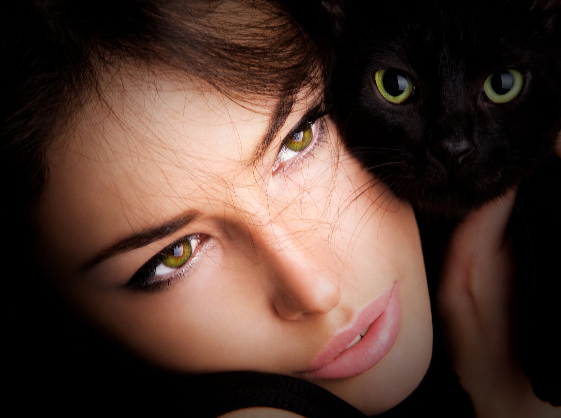 People with short hair, green eyes in black clothesPeople with short hair, green eyes in black clothes