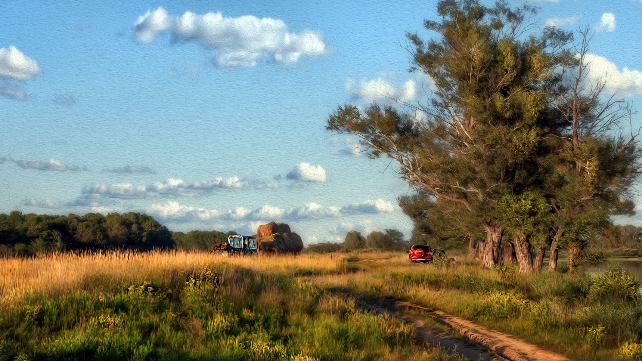 A blonde in a denim vest is lying in the hay and holding sunglassesA blonde in a denim vest is lying in the hay and holding sunglasses