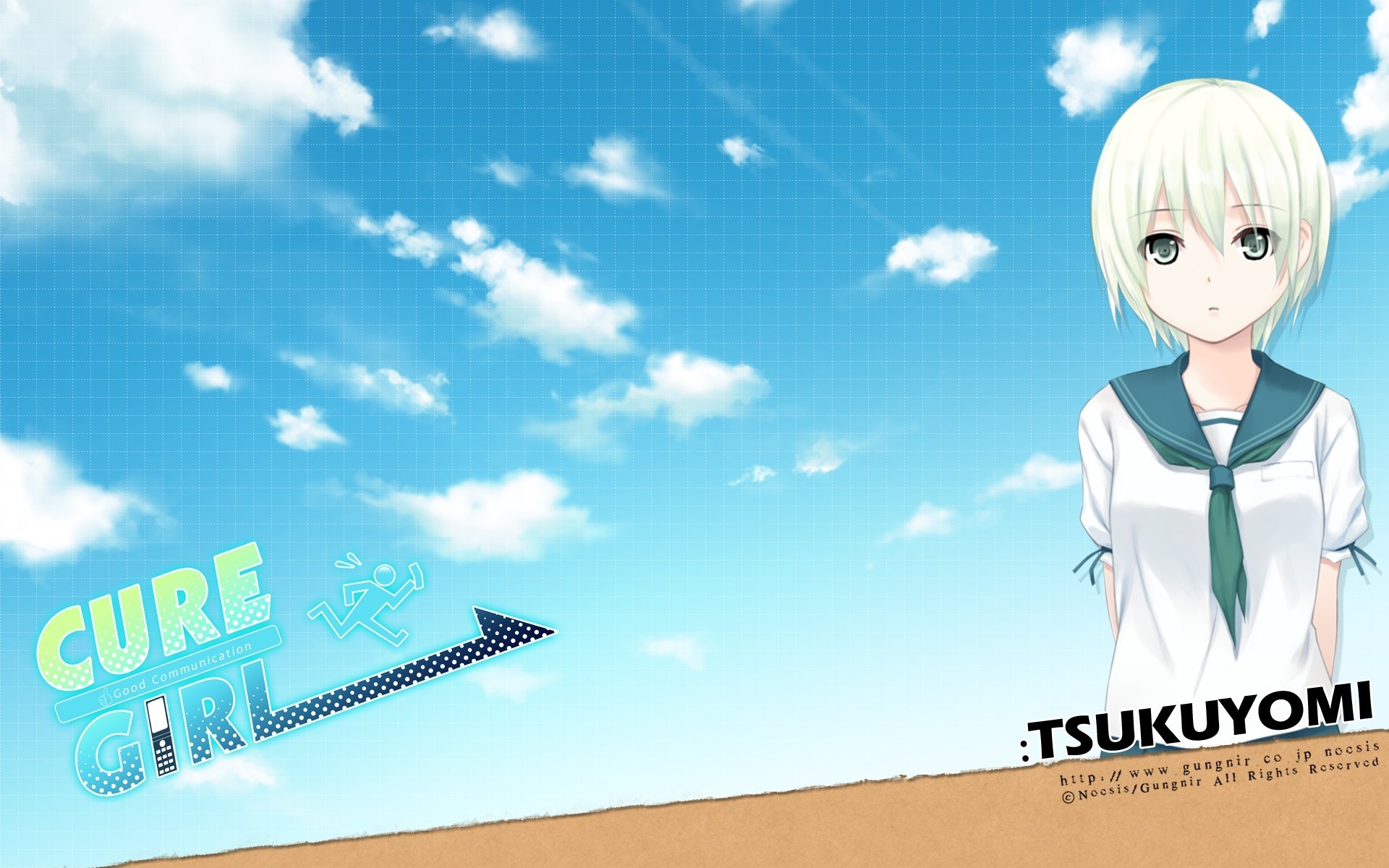 Blonde animeshka on a green background