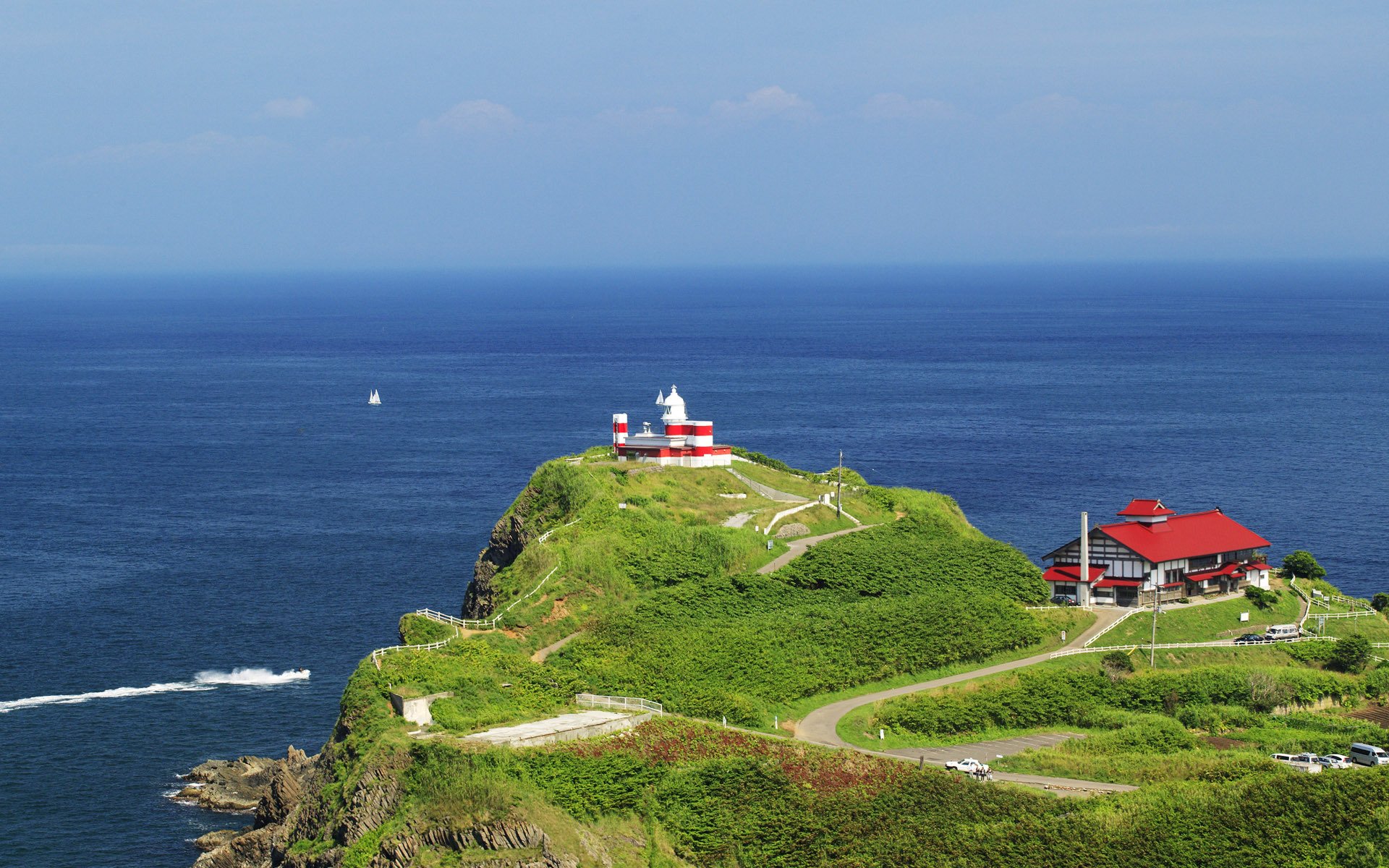The sea against the background of green hills and a fenceThe sea against the background of green hills and a fence
