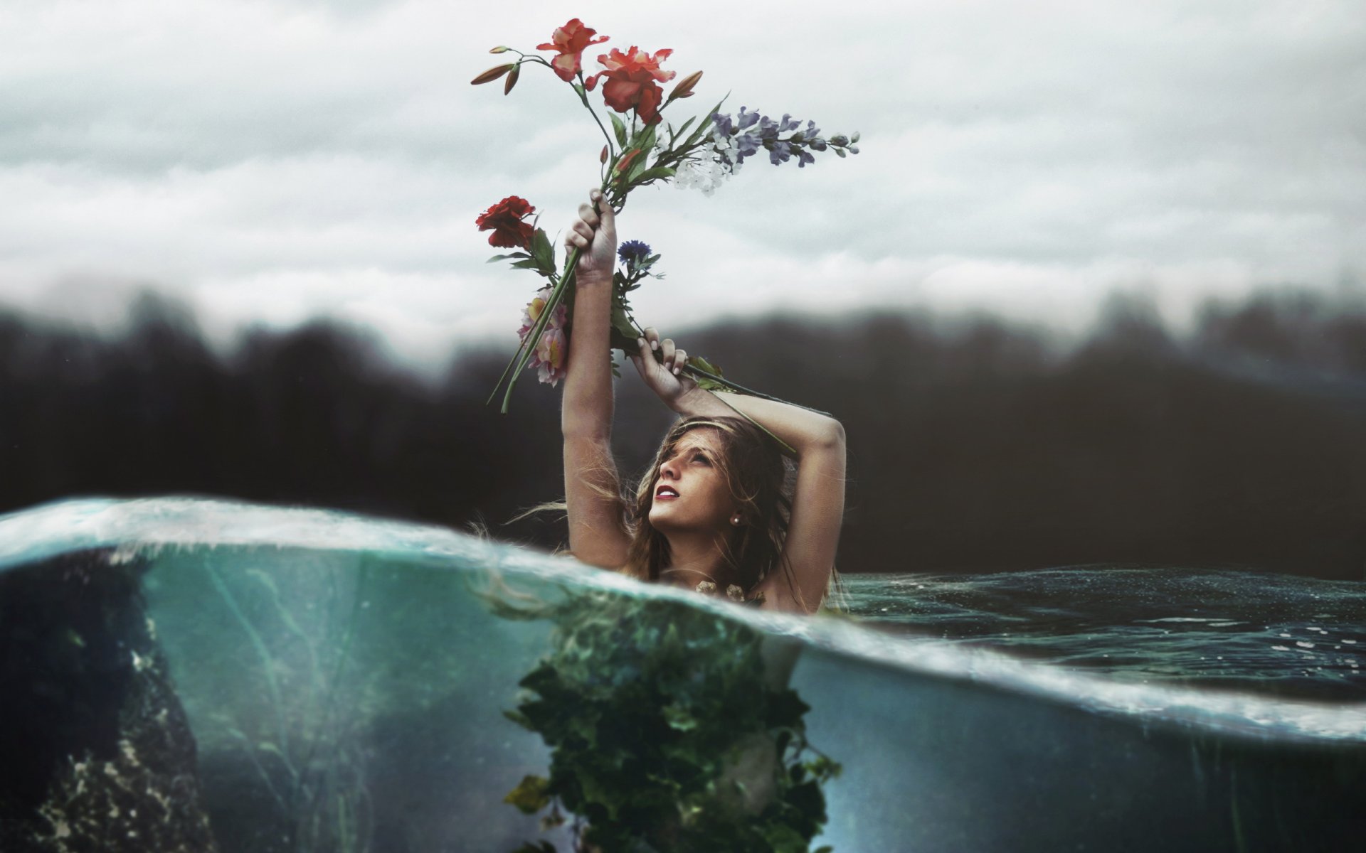 Naked girl lying on the floor and looking in the mirrorNaked girl lying on the floor and looking in the mirror