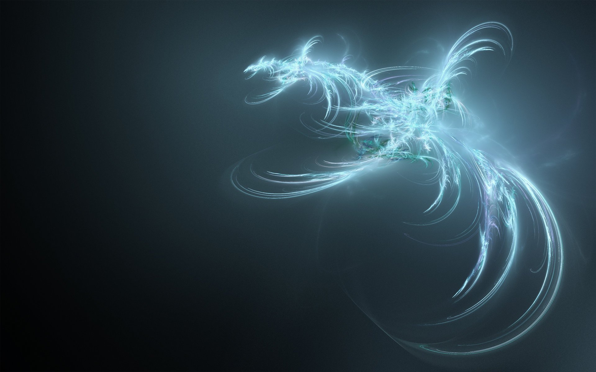 Delicate dinosaur drawing with clover and a drop of water in blue-green colors