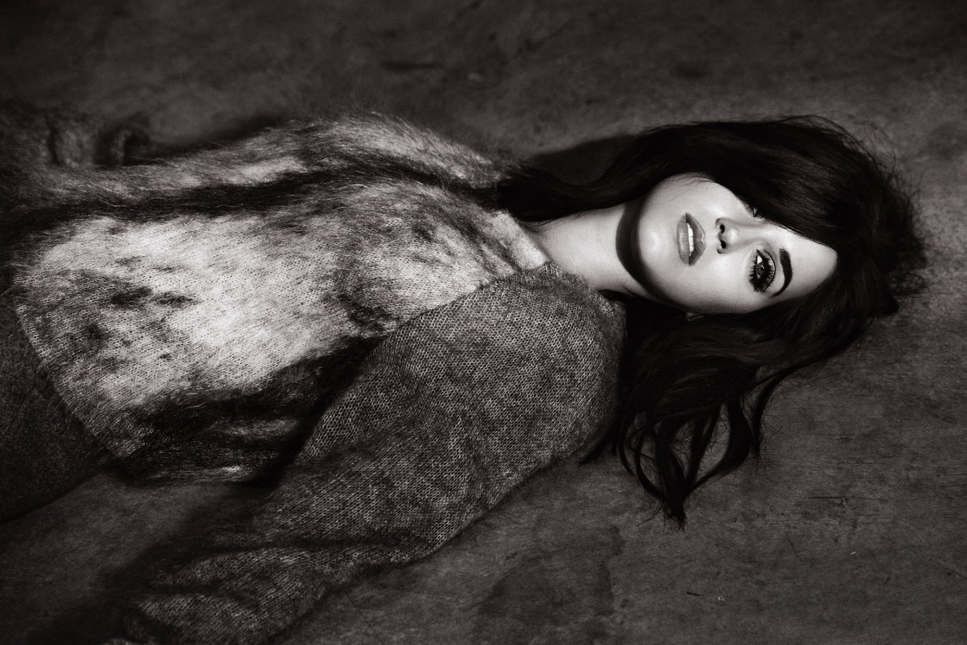 Katy Perry in a polka dot dress at a photo shoot in sheaves of hay