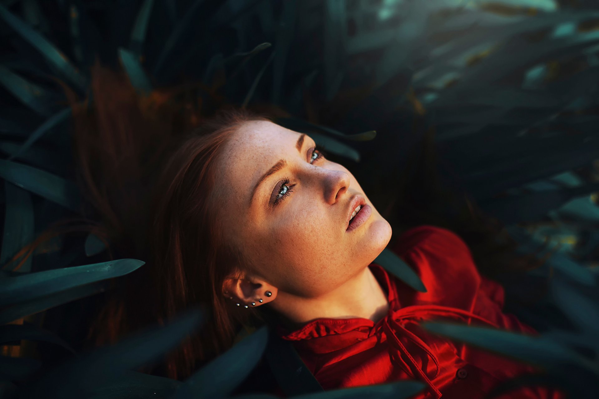 Three look into the distance, lighting the way with flashlights