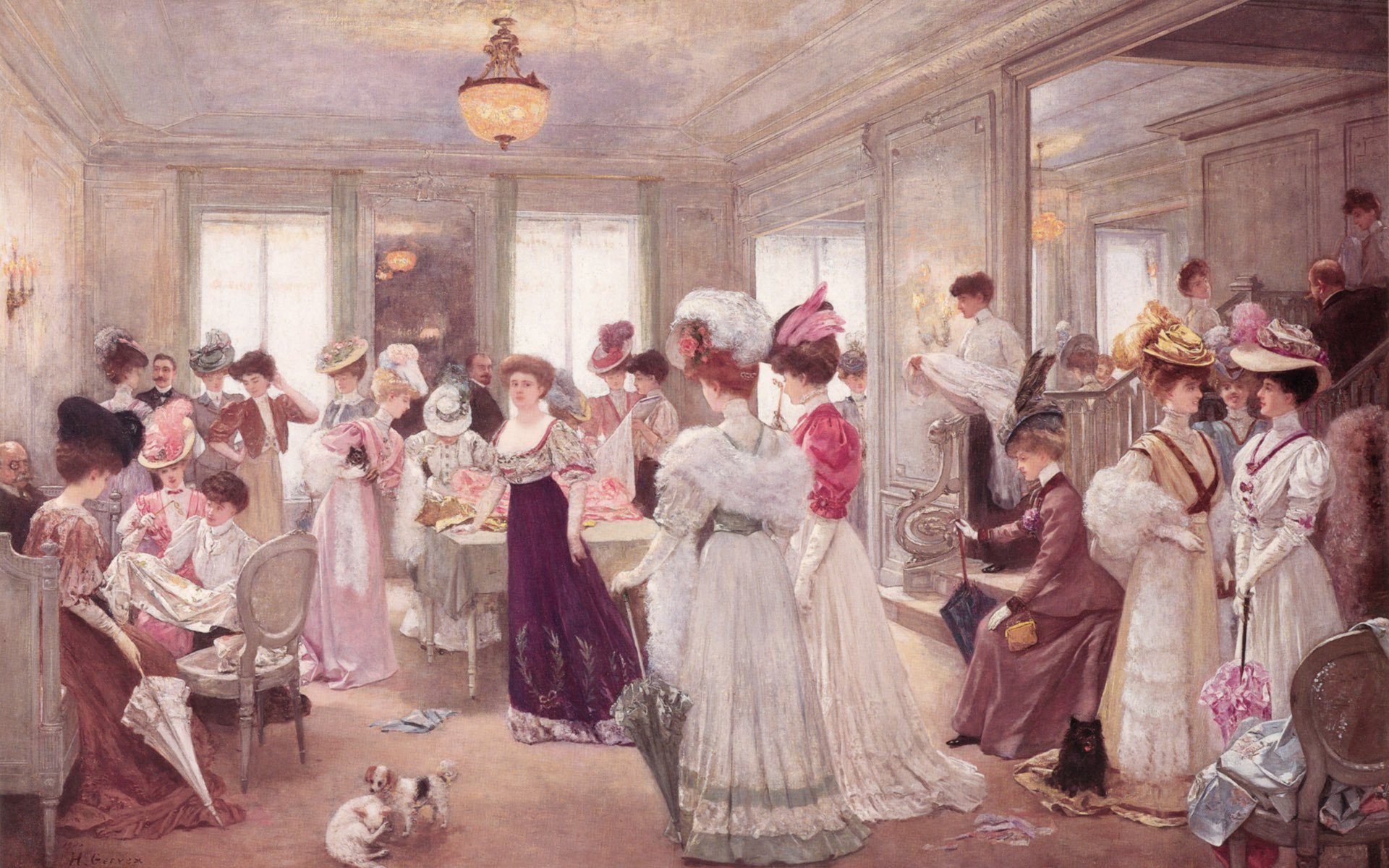 Ladies in beautiful outfits, and their dogs