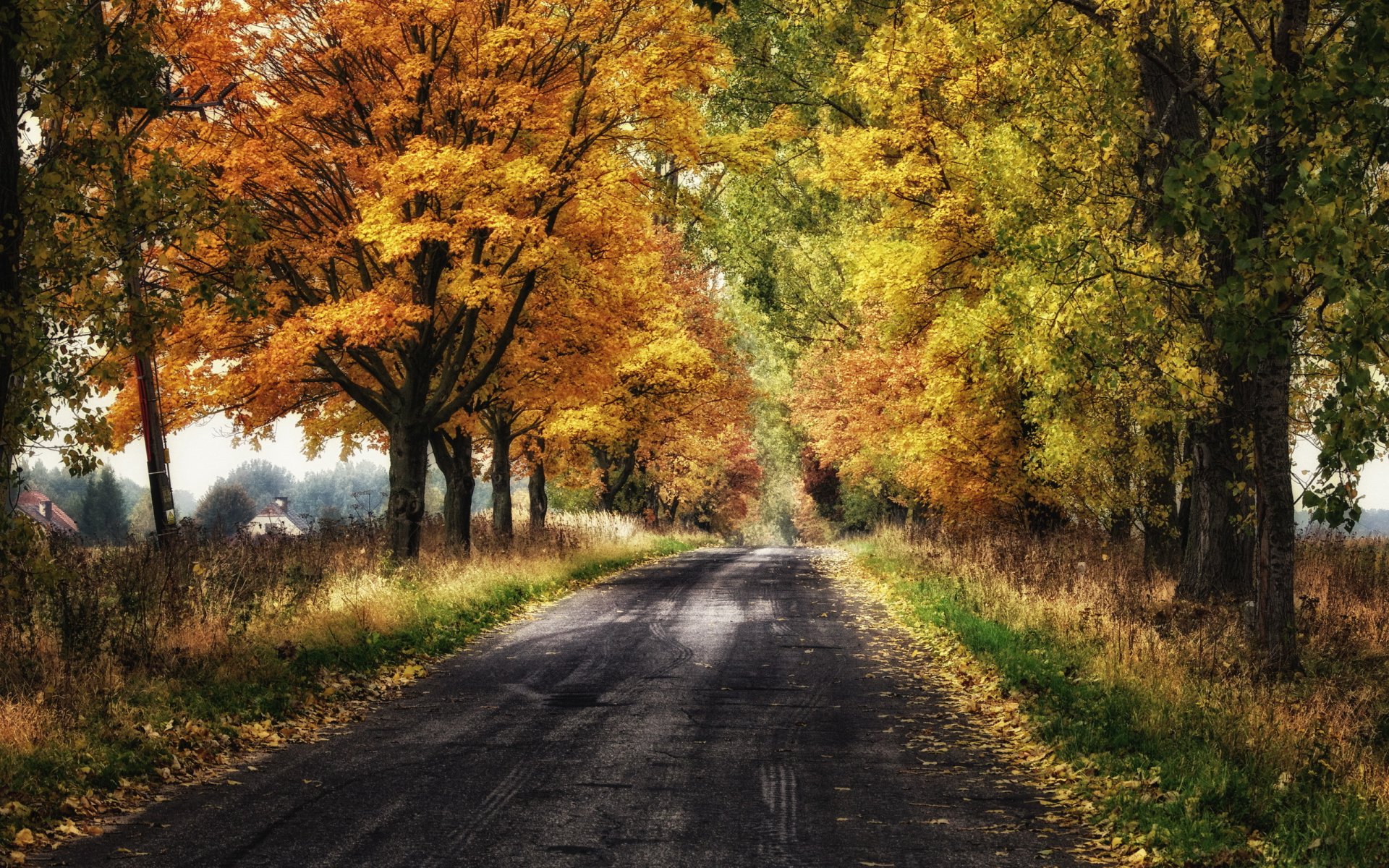 Autumn road landscape in bright colors
