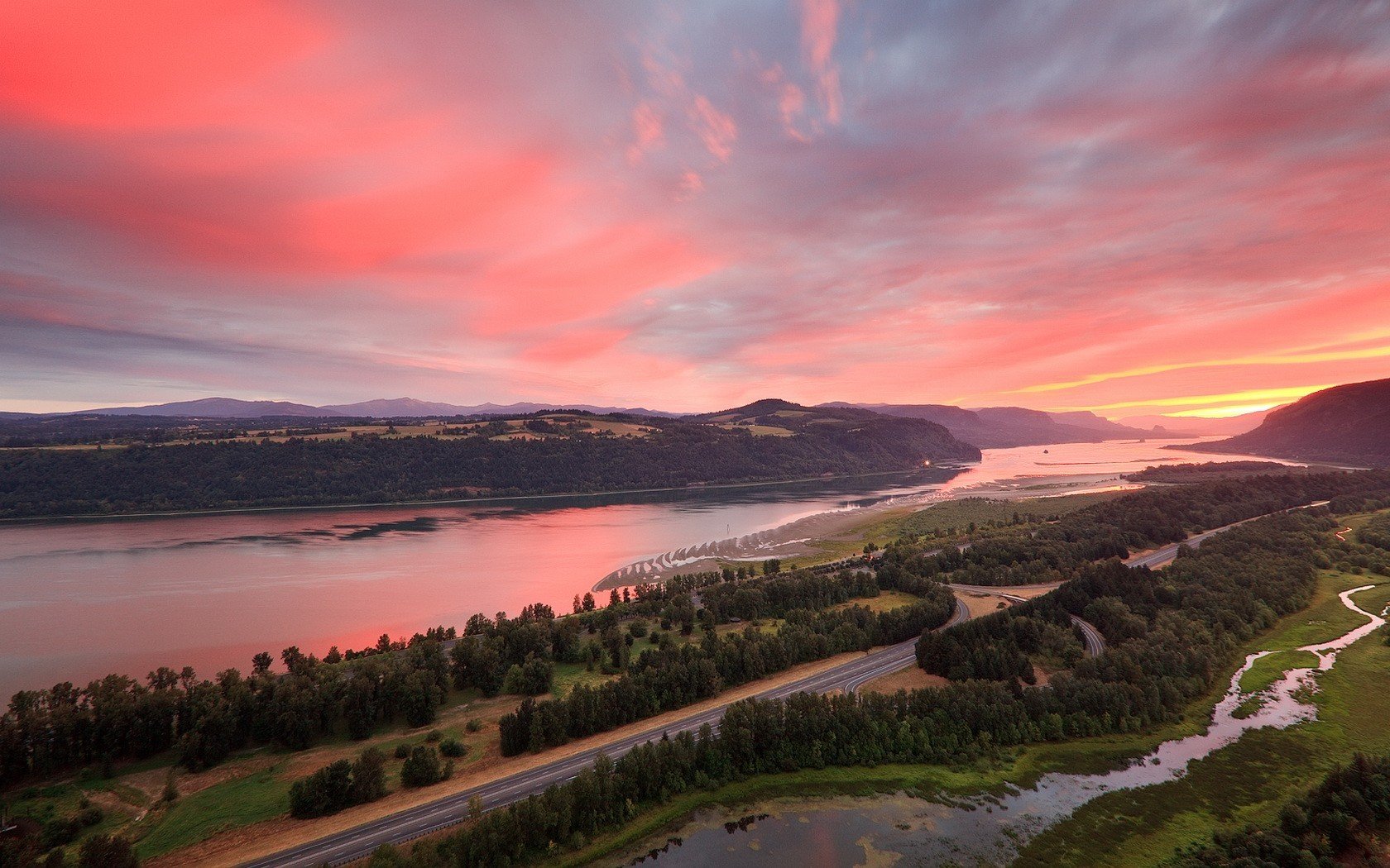 Winter river in the mountains with sunset in the backgroundWinter river in the mountains with sunset in the background