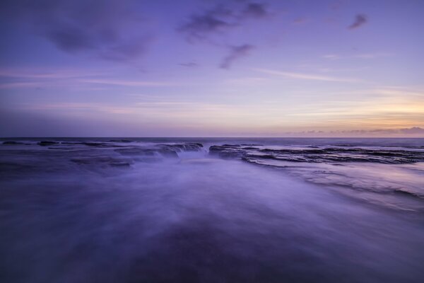 The ocean off the coast of japan against the background of a lilac skyThe ocean off the coast of Japan against the background of a lilac sky