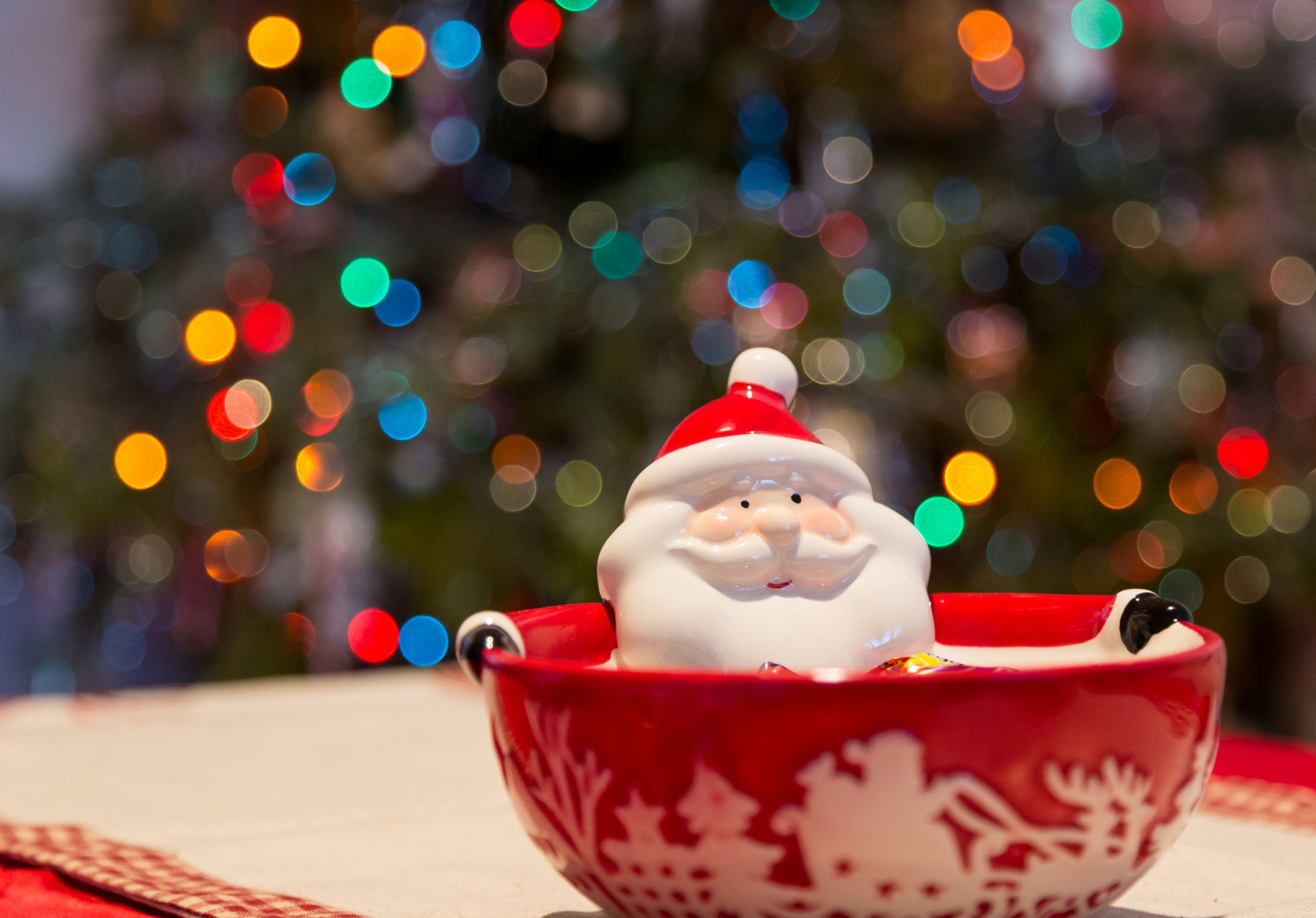 Christmas toy santa claus on the background of a christmas treeChristmas toy Santa Claus on the background of a Christmas tree