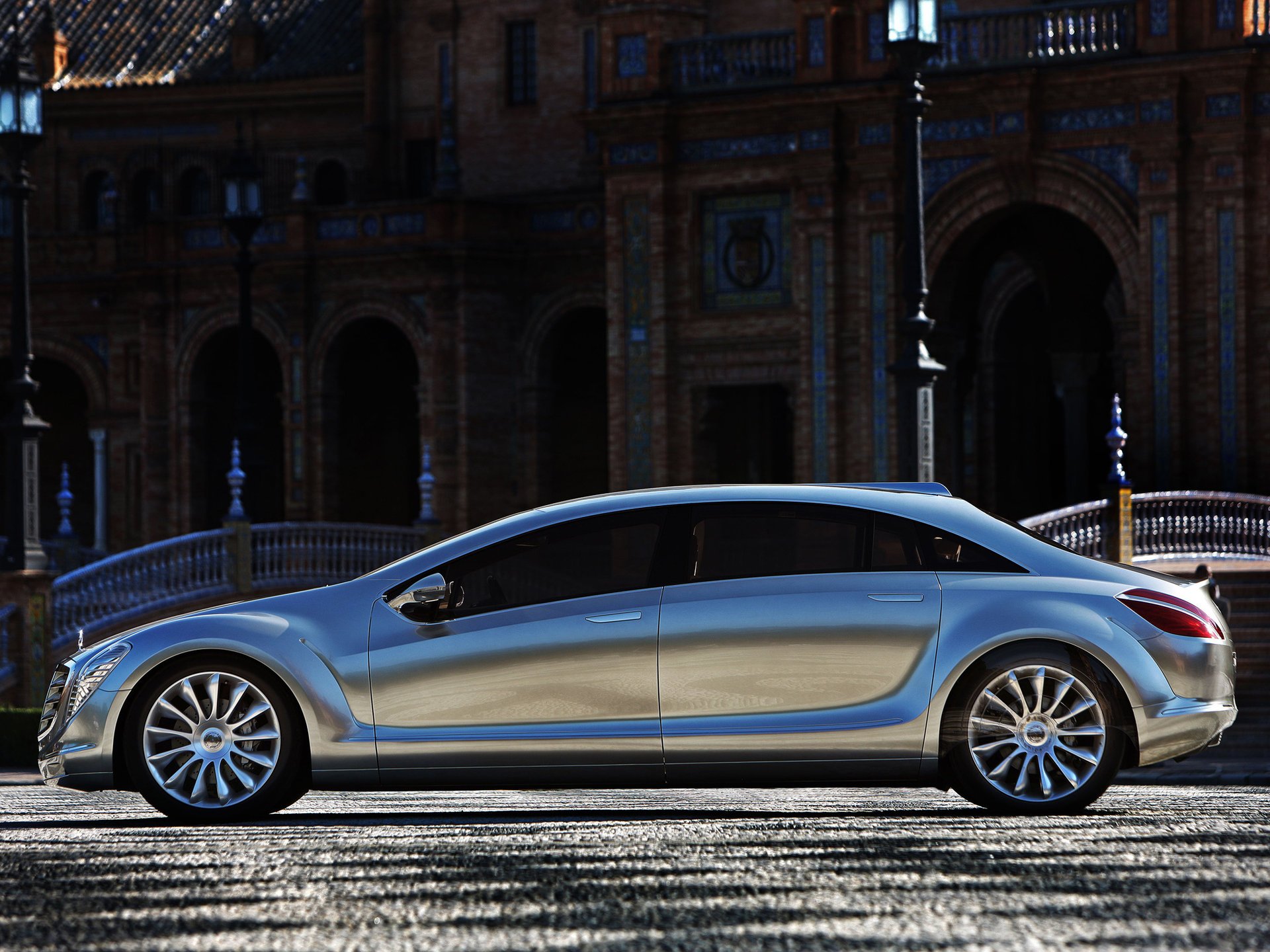A blue tinted mercedes-benz stands between gray columns in front of the fenceA blue tinted Mercedes-Benz stands between gray columns in front of the fence