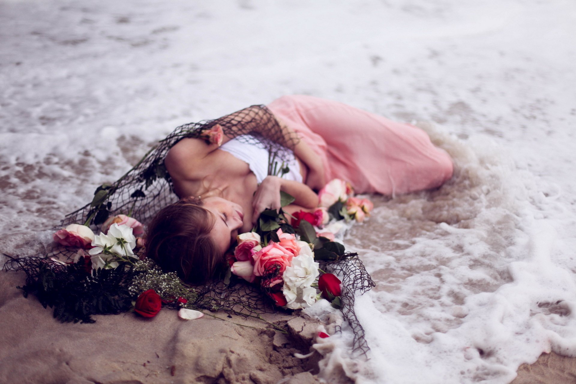 Photo shoot among the sea. the girl in the red dressPhoto shoot among the sea. the girl in the red dress