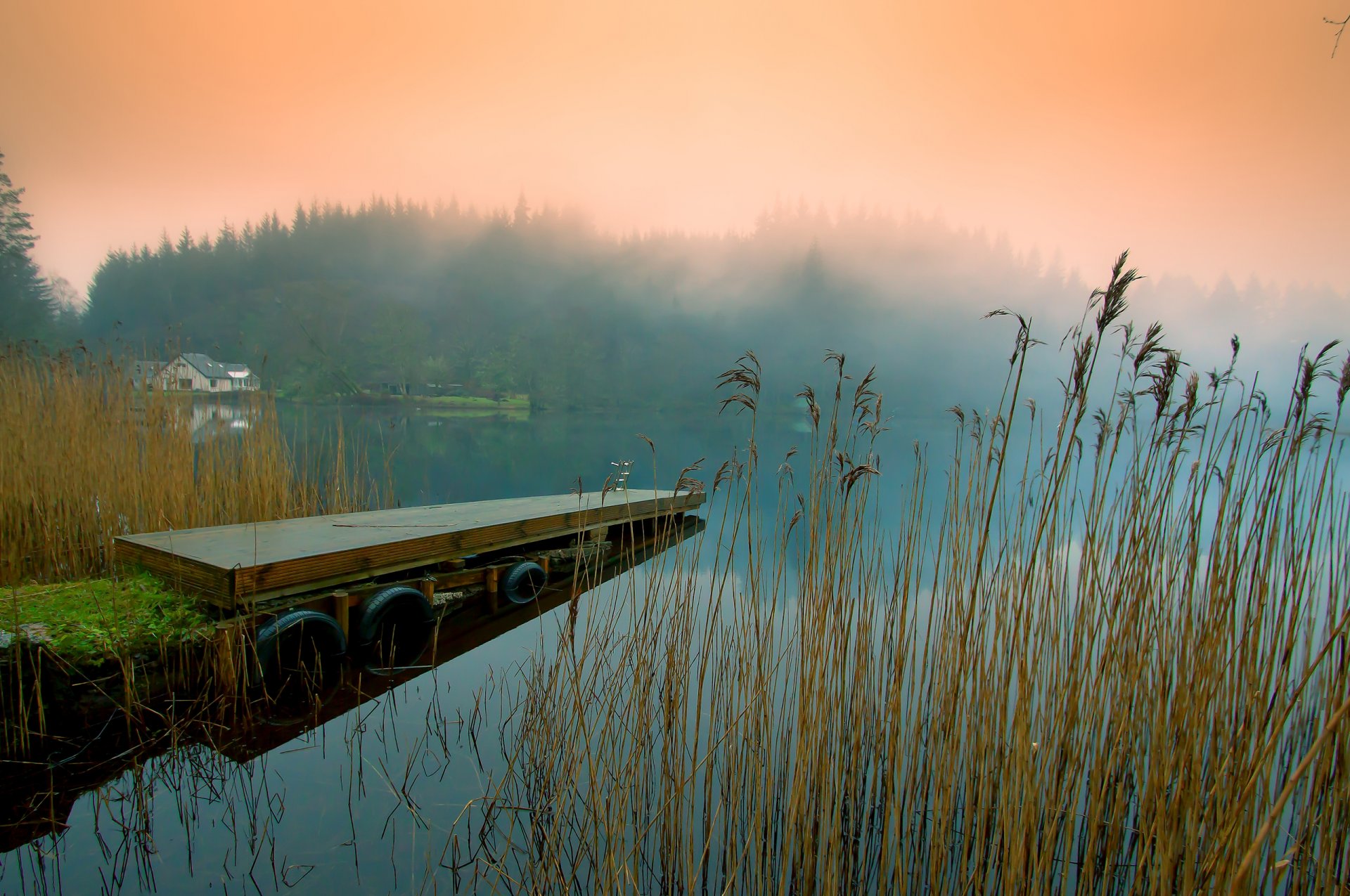 Morning sunrise on the river with reflection on the smooth surface of the waterMorning sunrise on the river with reflection on the smooth surface of the water