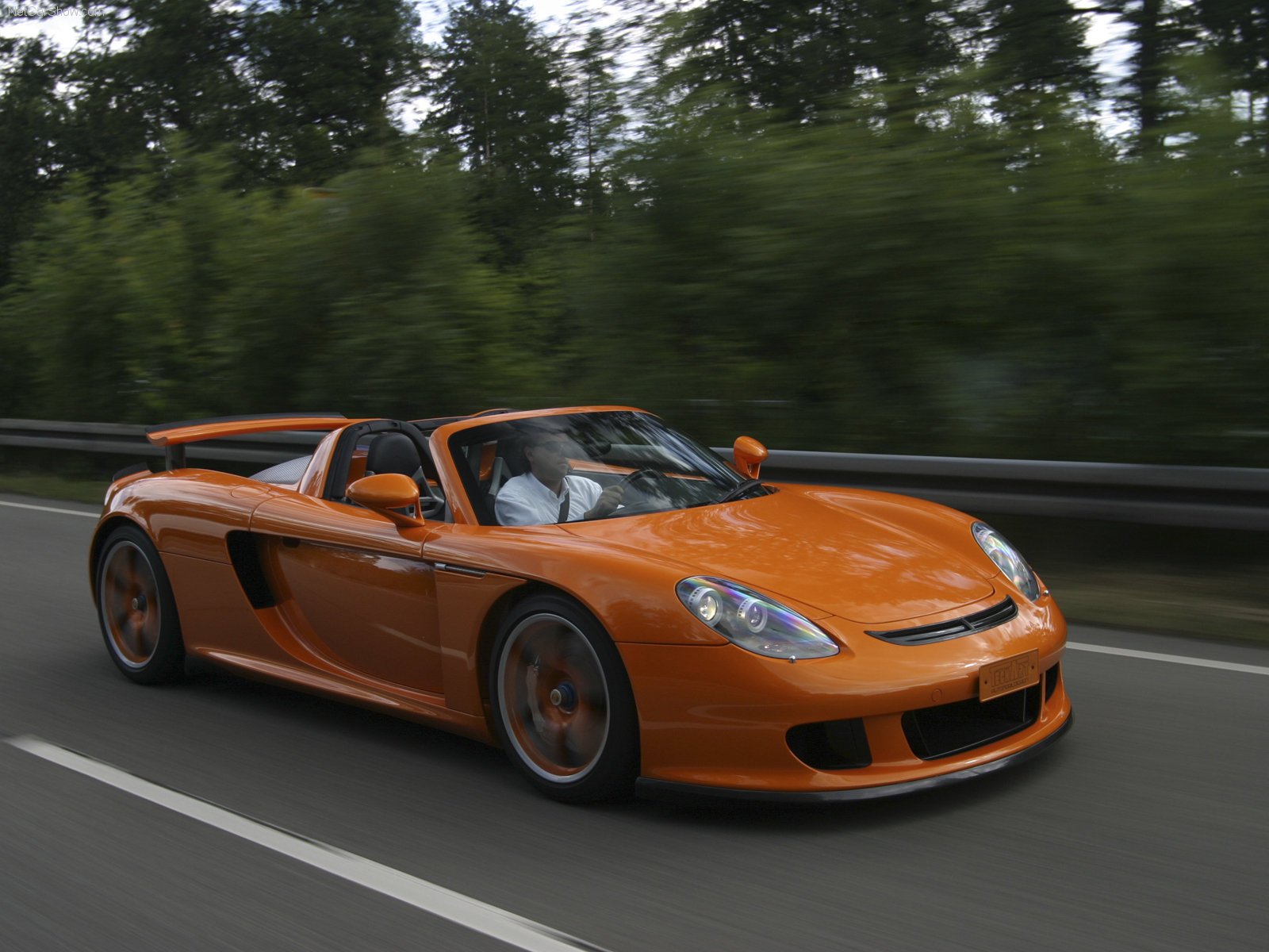 A convertible in motion on the road against the background of the forestA convertible in motion on the road against the background of the forest