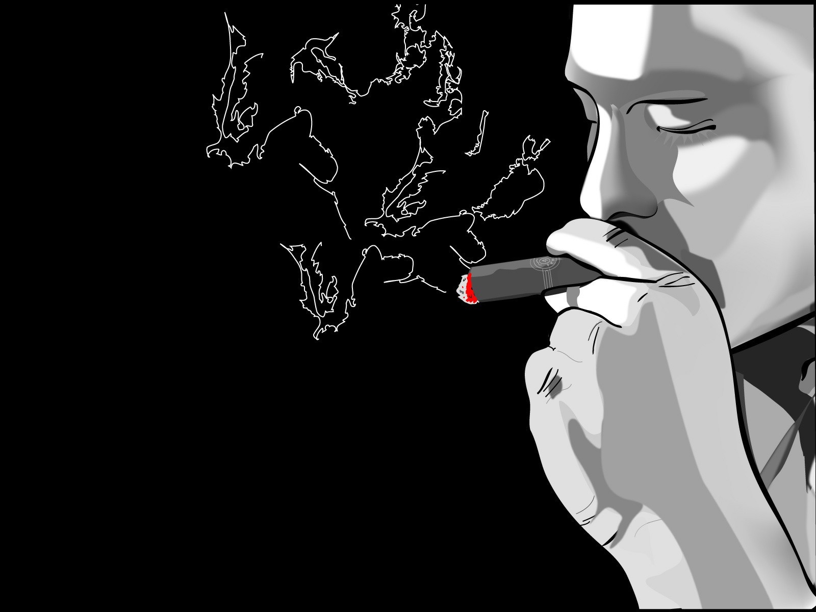 Kristen stewart with red hair exhales smoke on a yellow backgroundKristen Stewart with red hair exhales smoke on a yellow background
