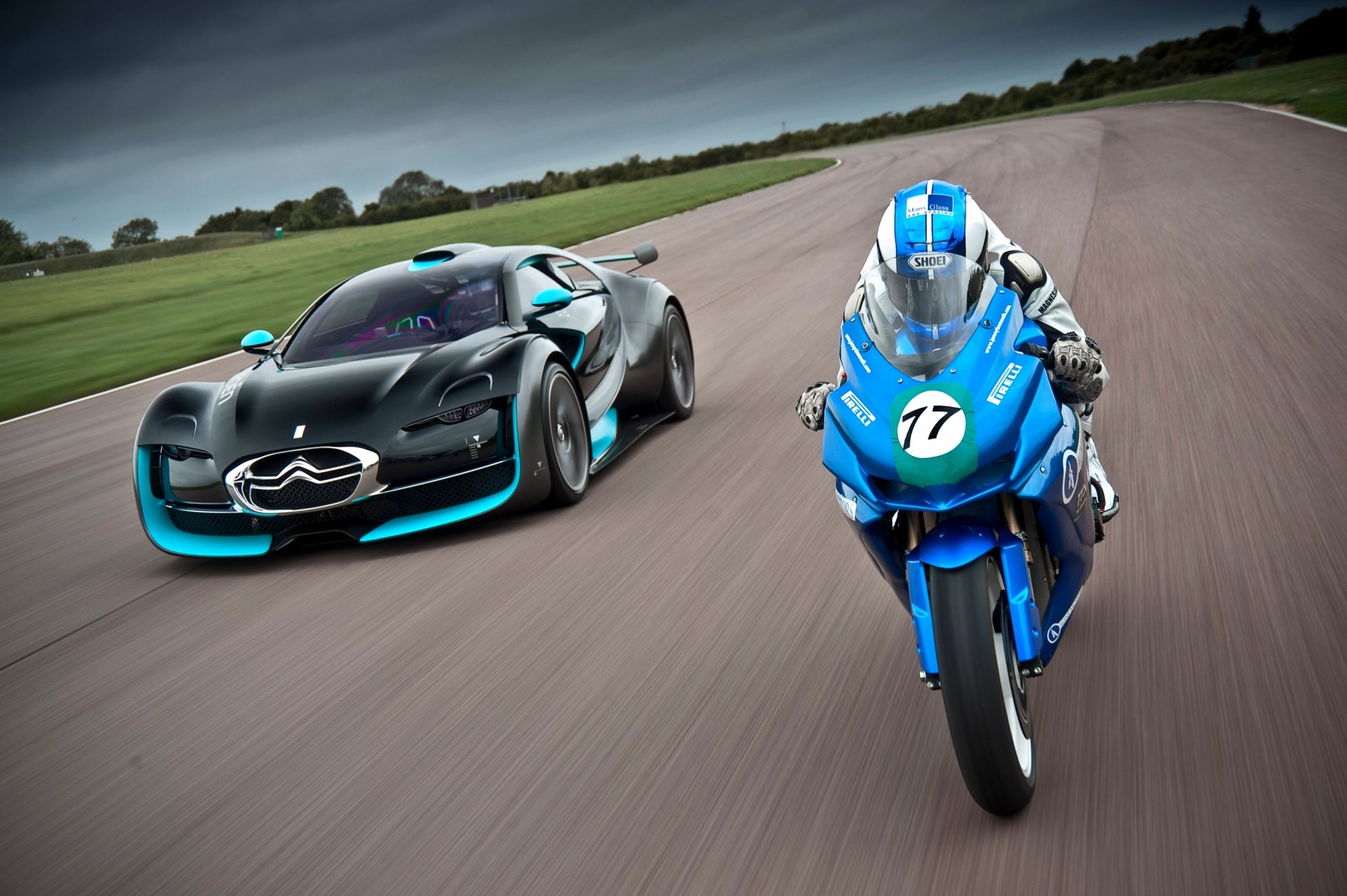 Stylish orange motorcycle with grey inserts on a blue and white backgroundStylish orange motorcycle with grey inserts on a blue and white background