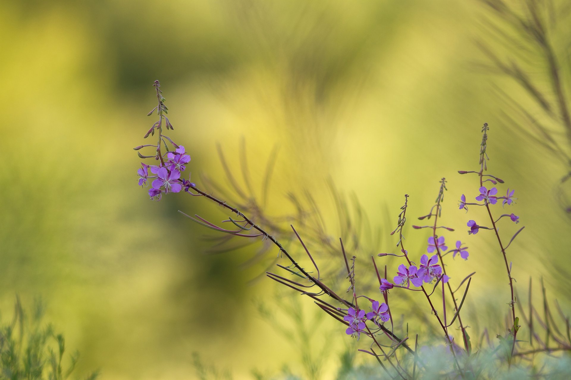 Yellow , purple and white flowers on a blurry backgroundYellow , purple and white flowers on a blurry background