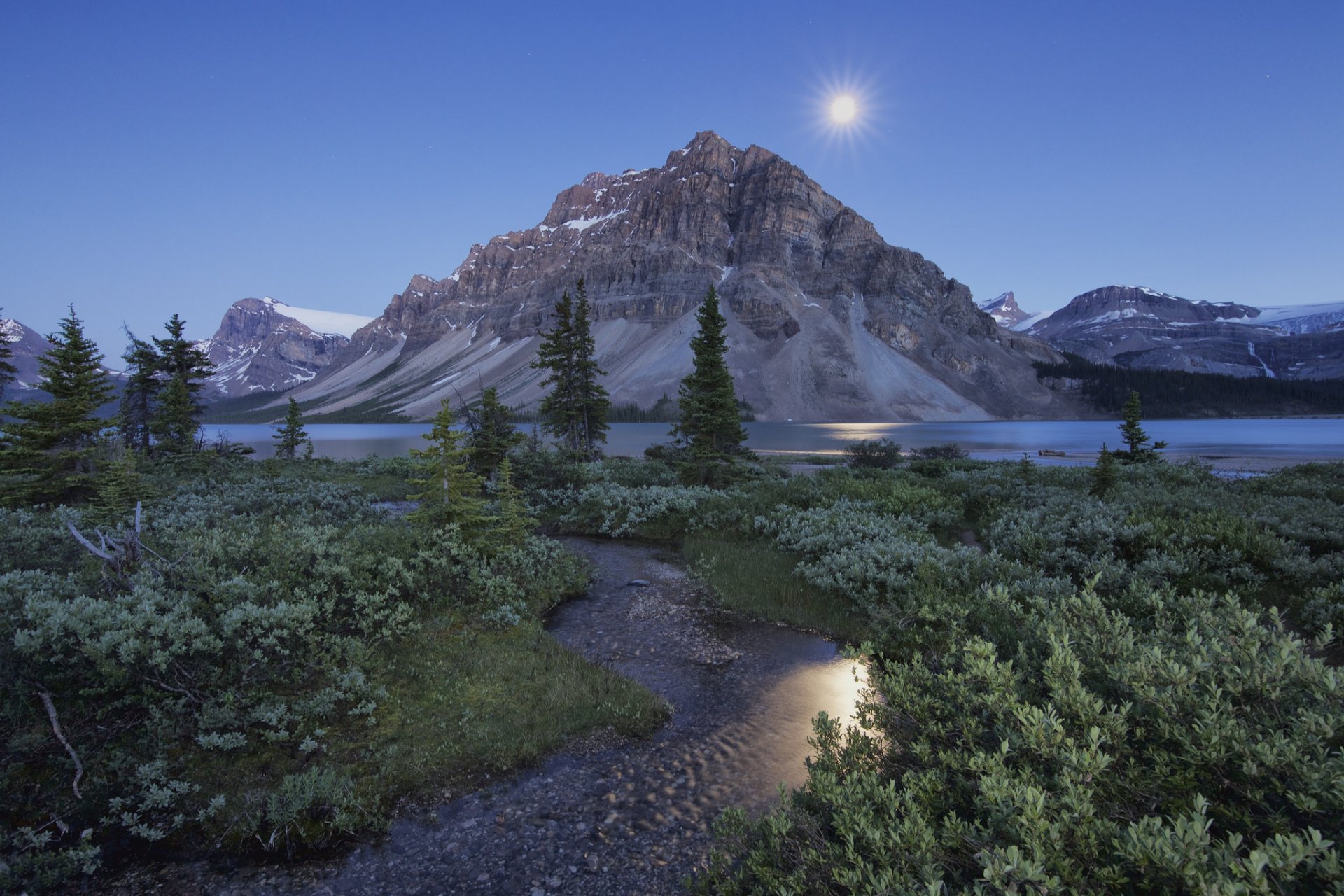Glacial lake surrounded by majestic rocky mountainsGlacial lake surrounded by majestic rocky mountains