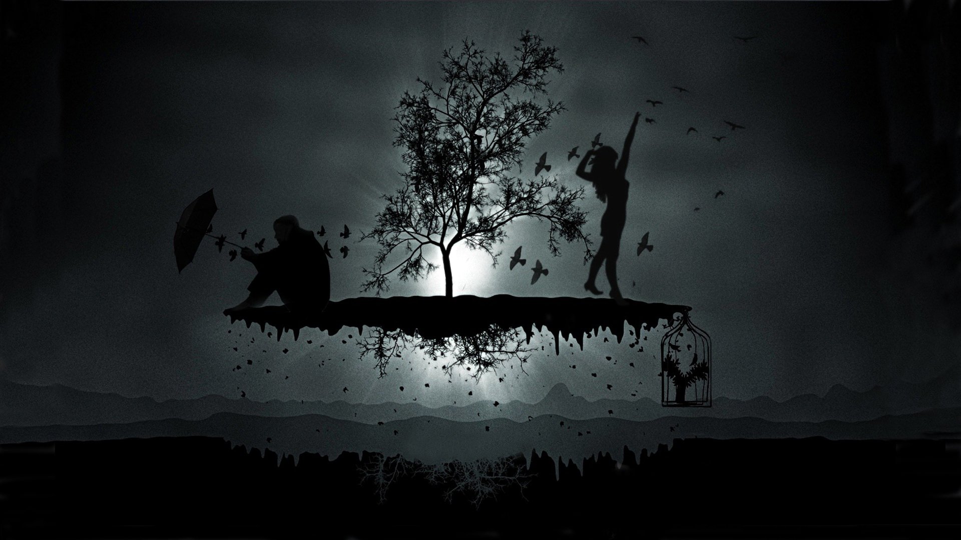 Moonlight on the background of a silhouette of a woman and a manMoonlight on the background of a silhouette of a woman and a man