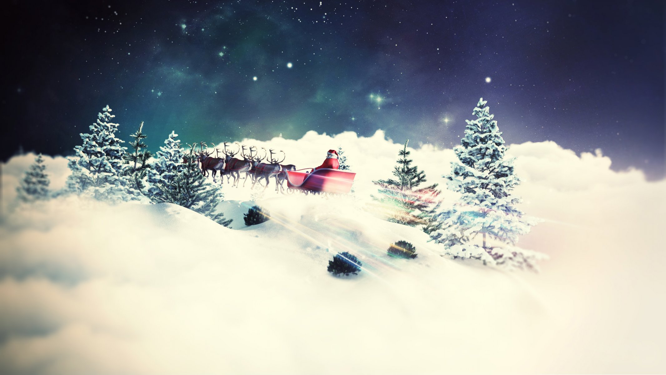 Santa claus on a red throne with a christmas tree giftsSanta Claus on a red throne with a Christmas tree gifts