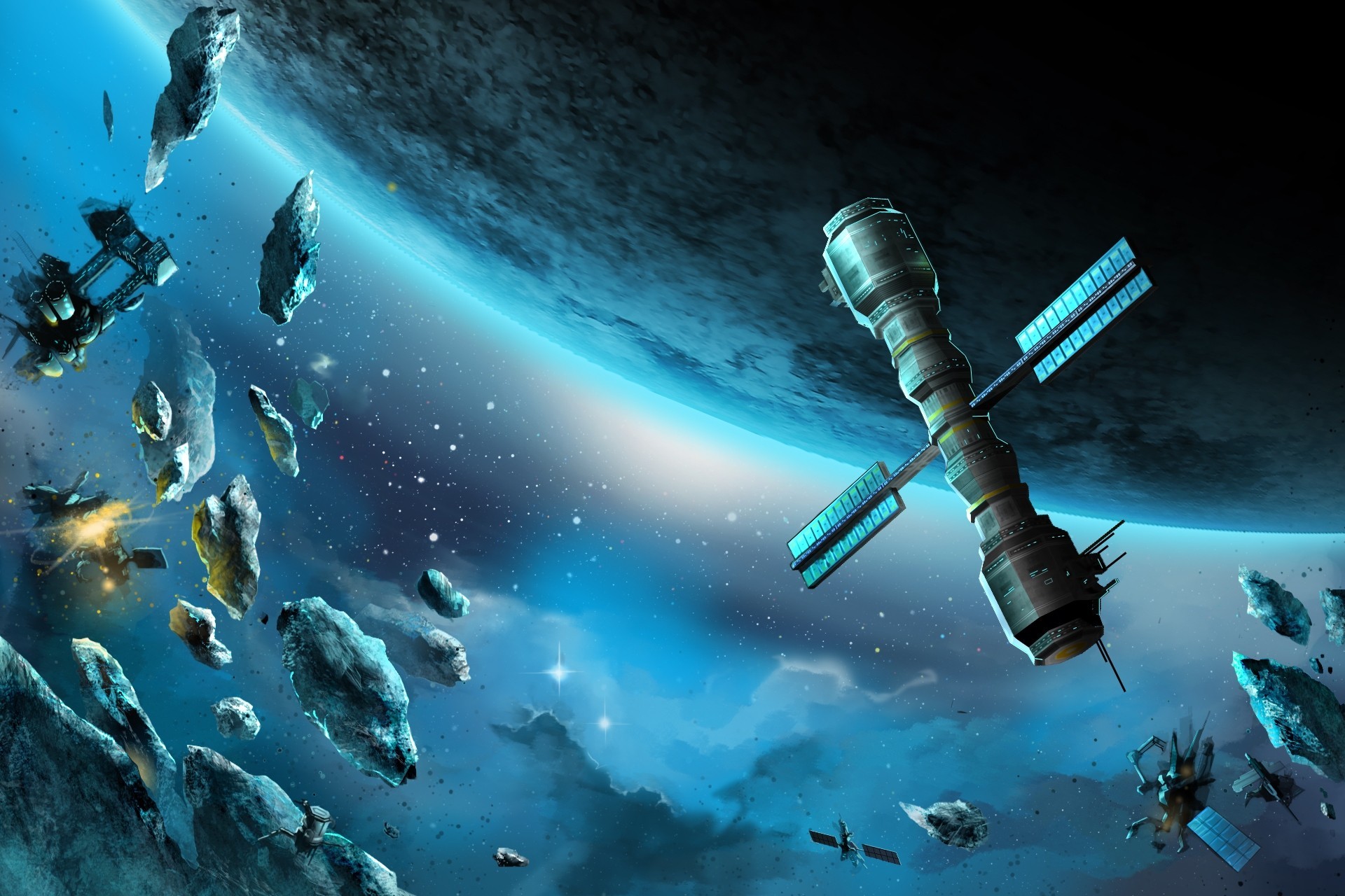 A satellite flying in space not far from the planetA satellite flying in space not far from the planet