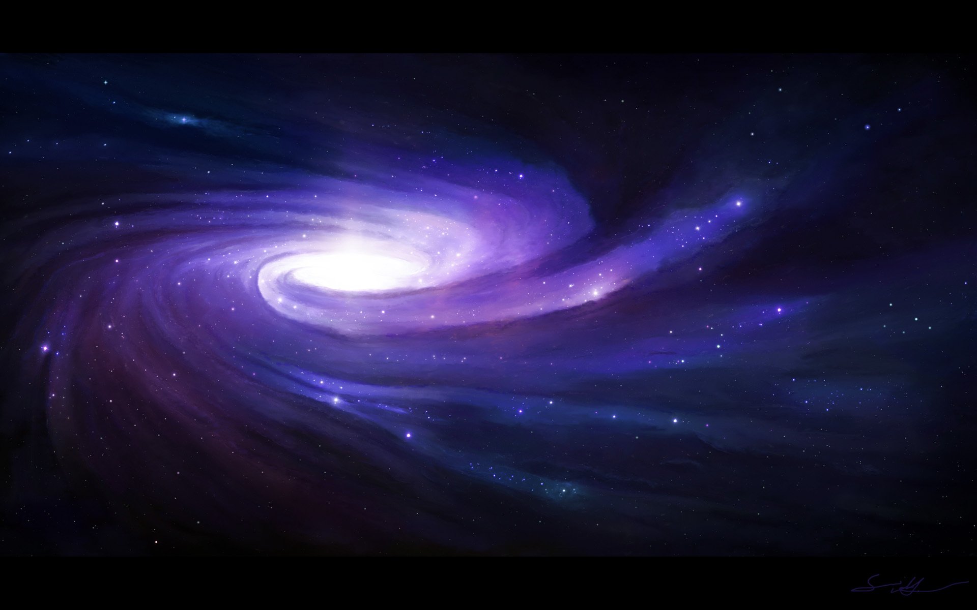 On a black background, blue circles emit light in a spiralOn a black background, blue circles emit light in a spiral