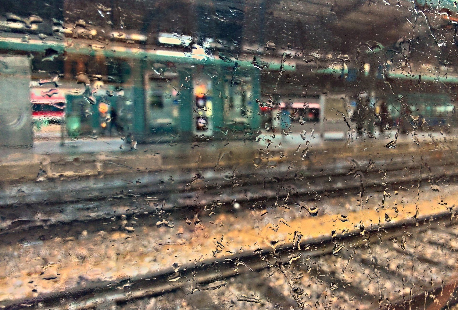 Art sjii vocaloid. a girl near the station near the train with a bag on the background of winter