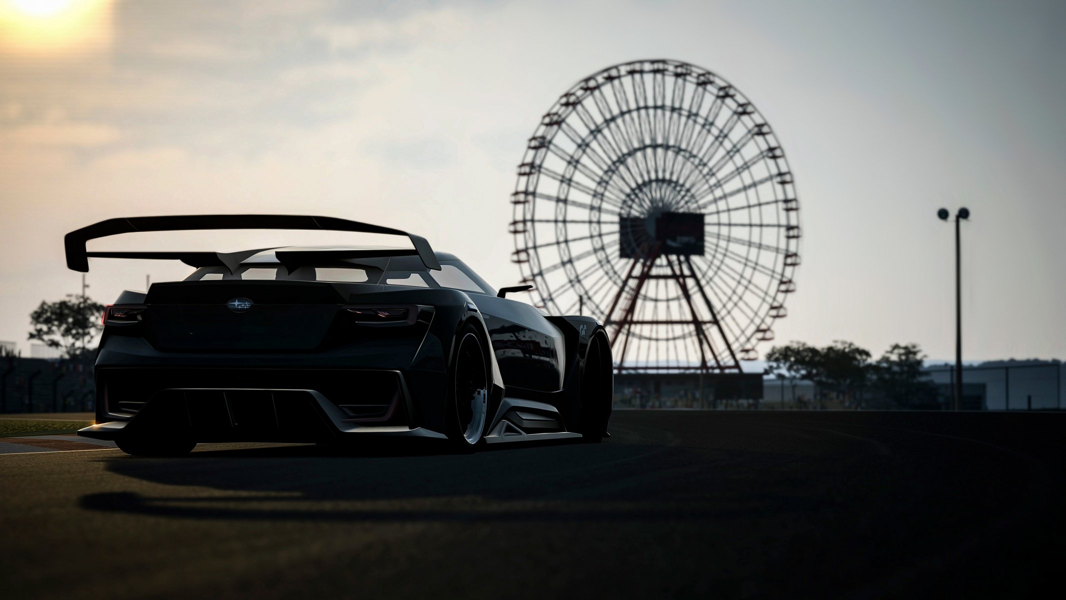 Subaru car on the background of the Ferris wheel