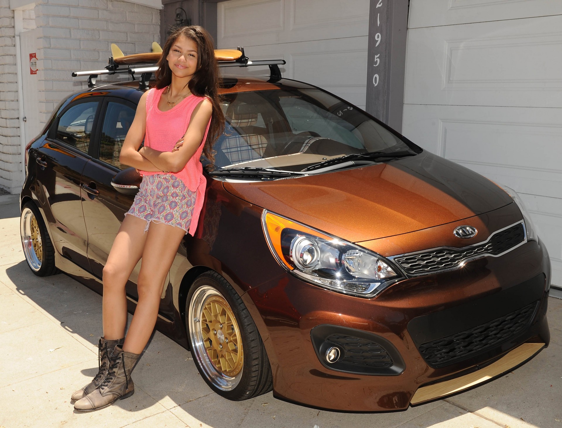 The girl standing near the car
