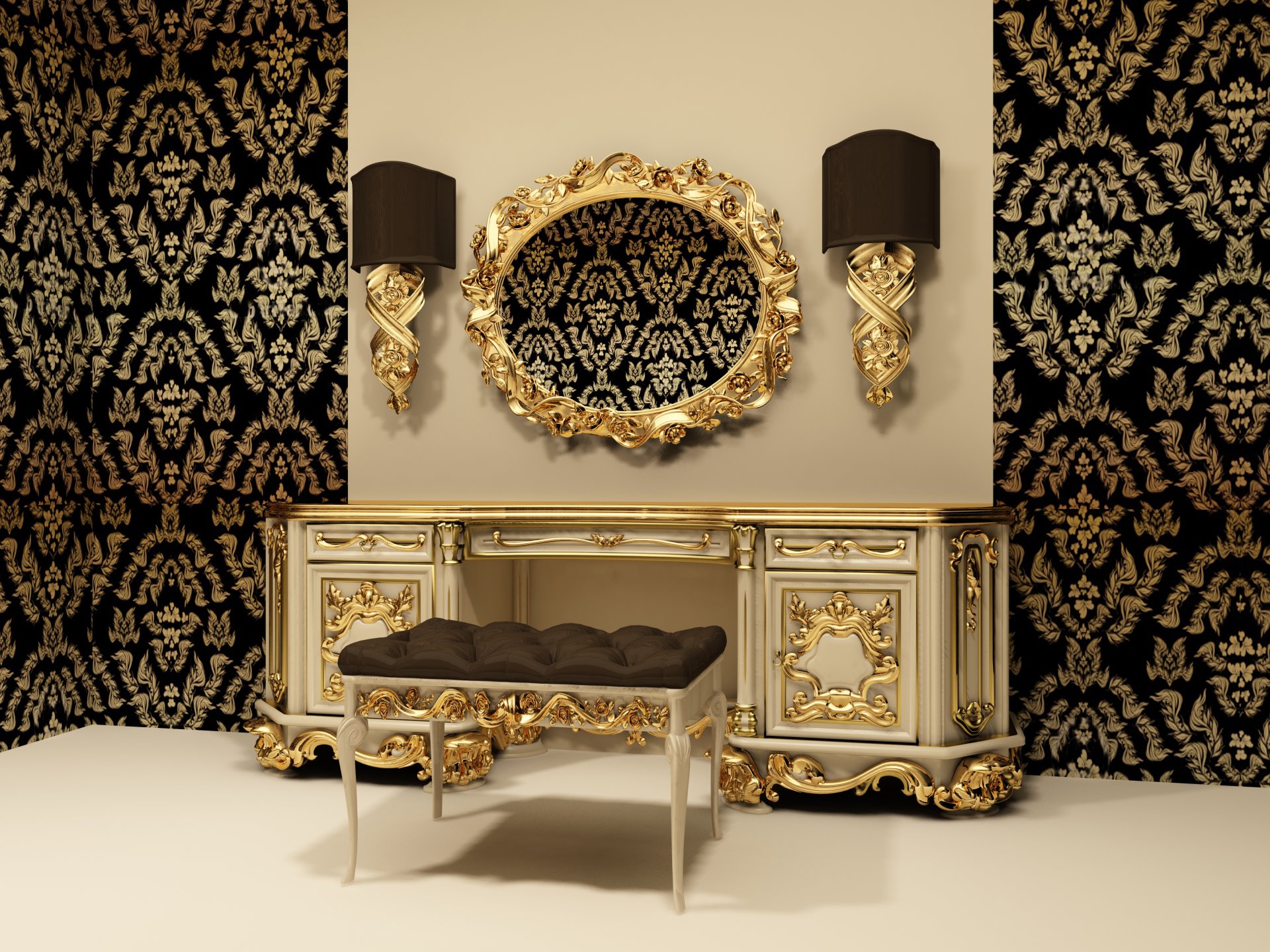 The interior of the room in gold