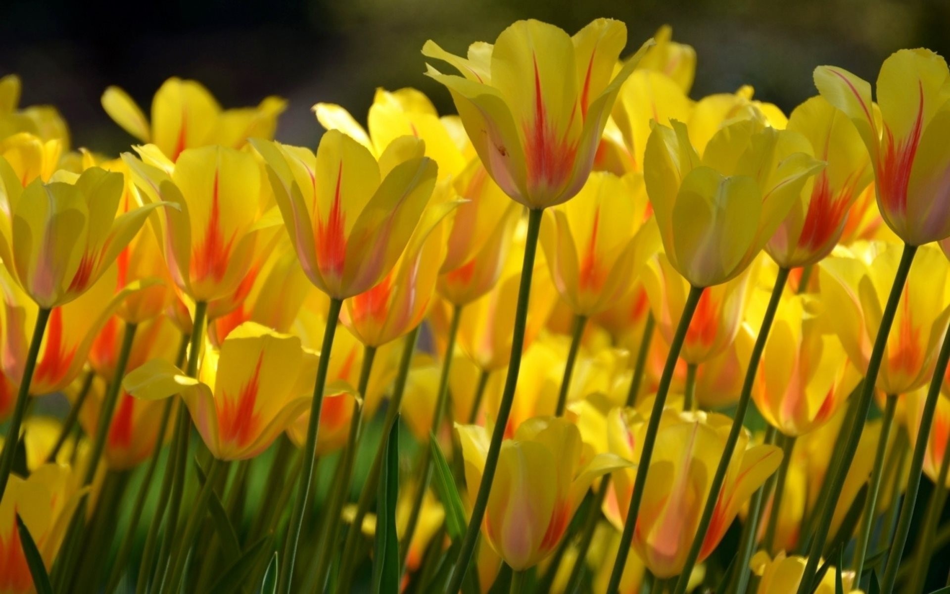 There are a lot of colorful boomers in the parking lot. In the foreground is a silver one, and five more different ones a little further away