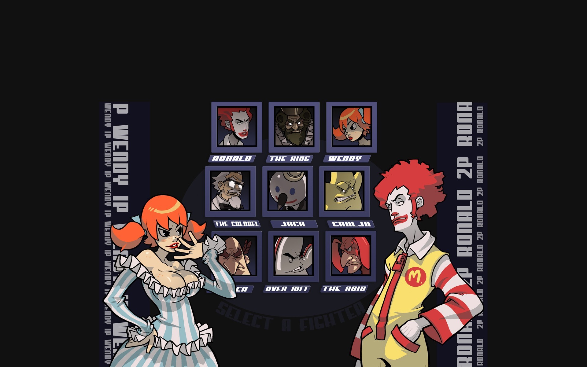 On a dark background there is a girl and a guy in the form of a clownOn a dark background there is a girl and a guy in the form of a clown