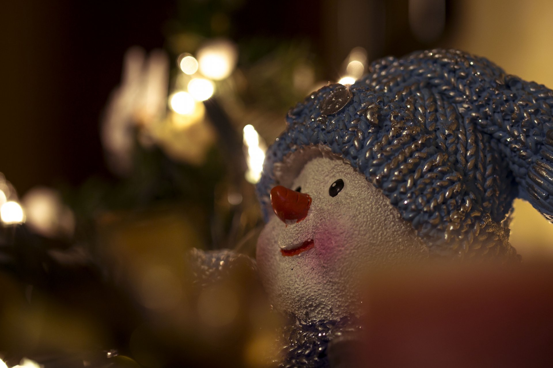 Snowman in the rays of lights on the christmas treeSnowman in the rays of lights on the Christmas tree