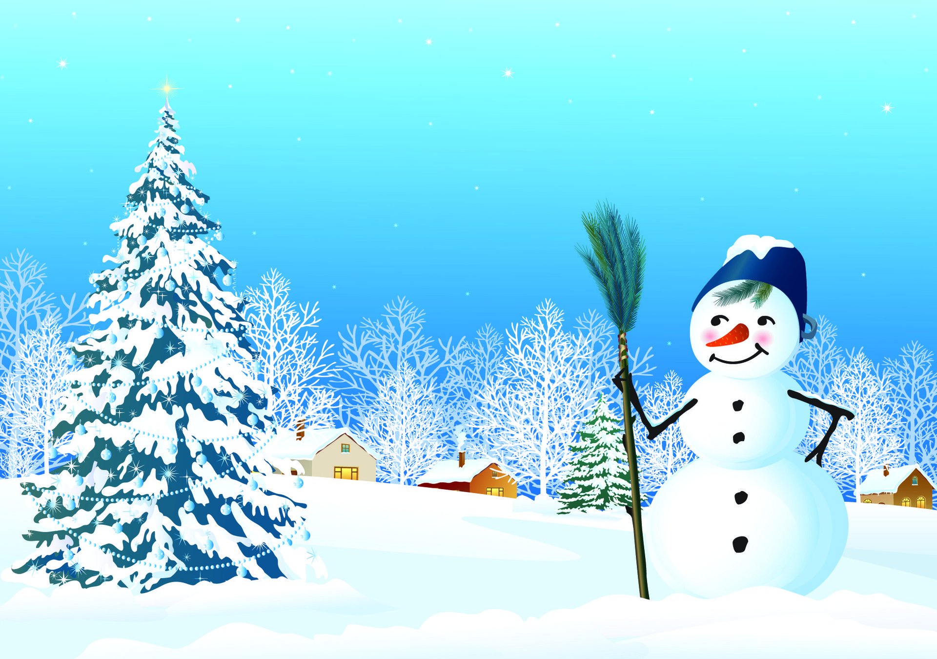 Funny snowman in the village
