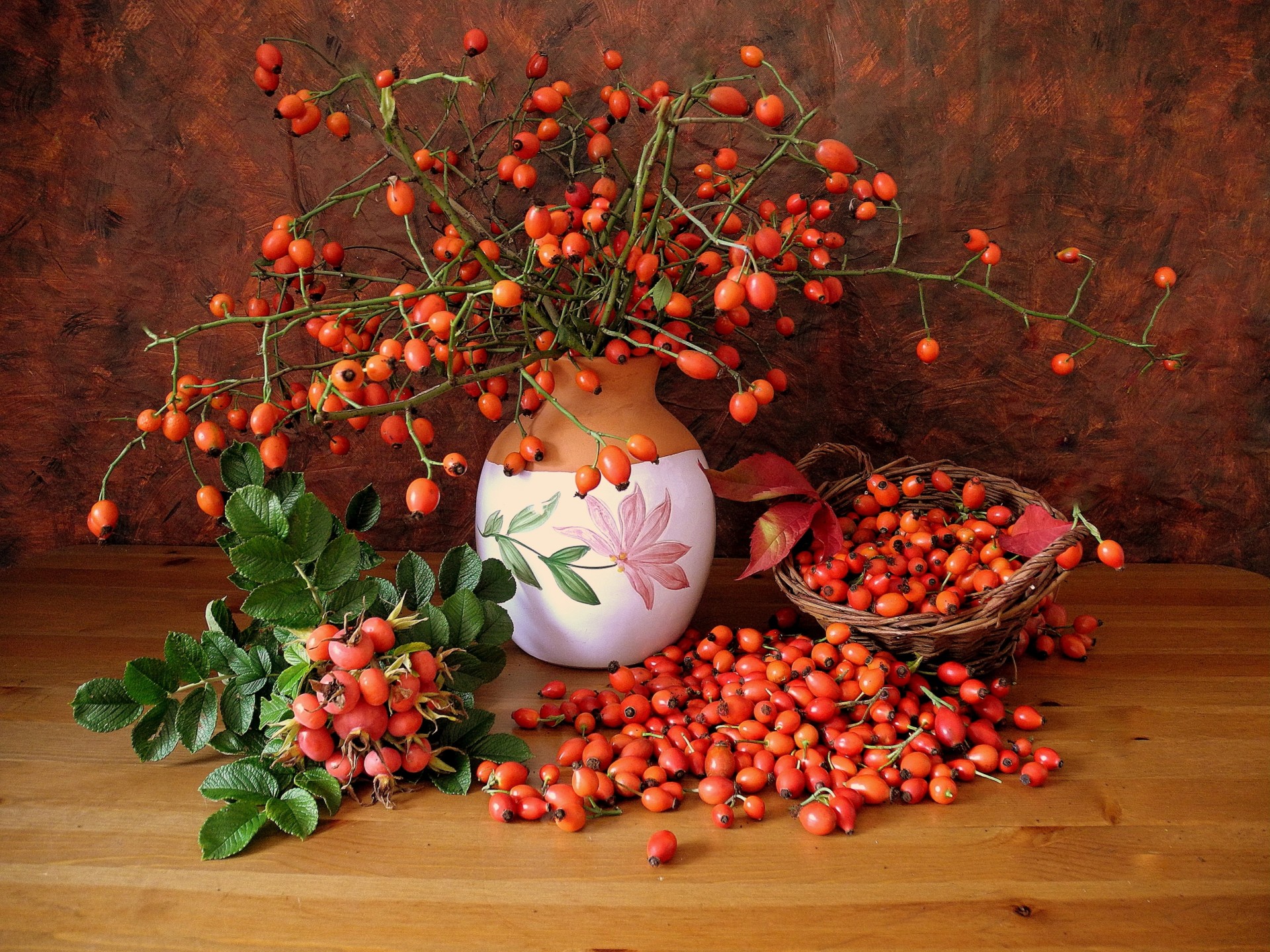 Still life with the image of a vase of strawberriesStill life with the image of a vase of strawberries