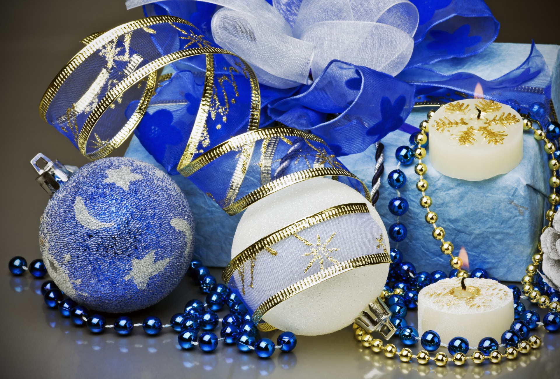 Garland of stars and golden balls and a gift in a boxGarland of stars and golden balls and a gift in a box