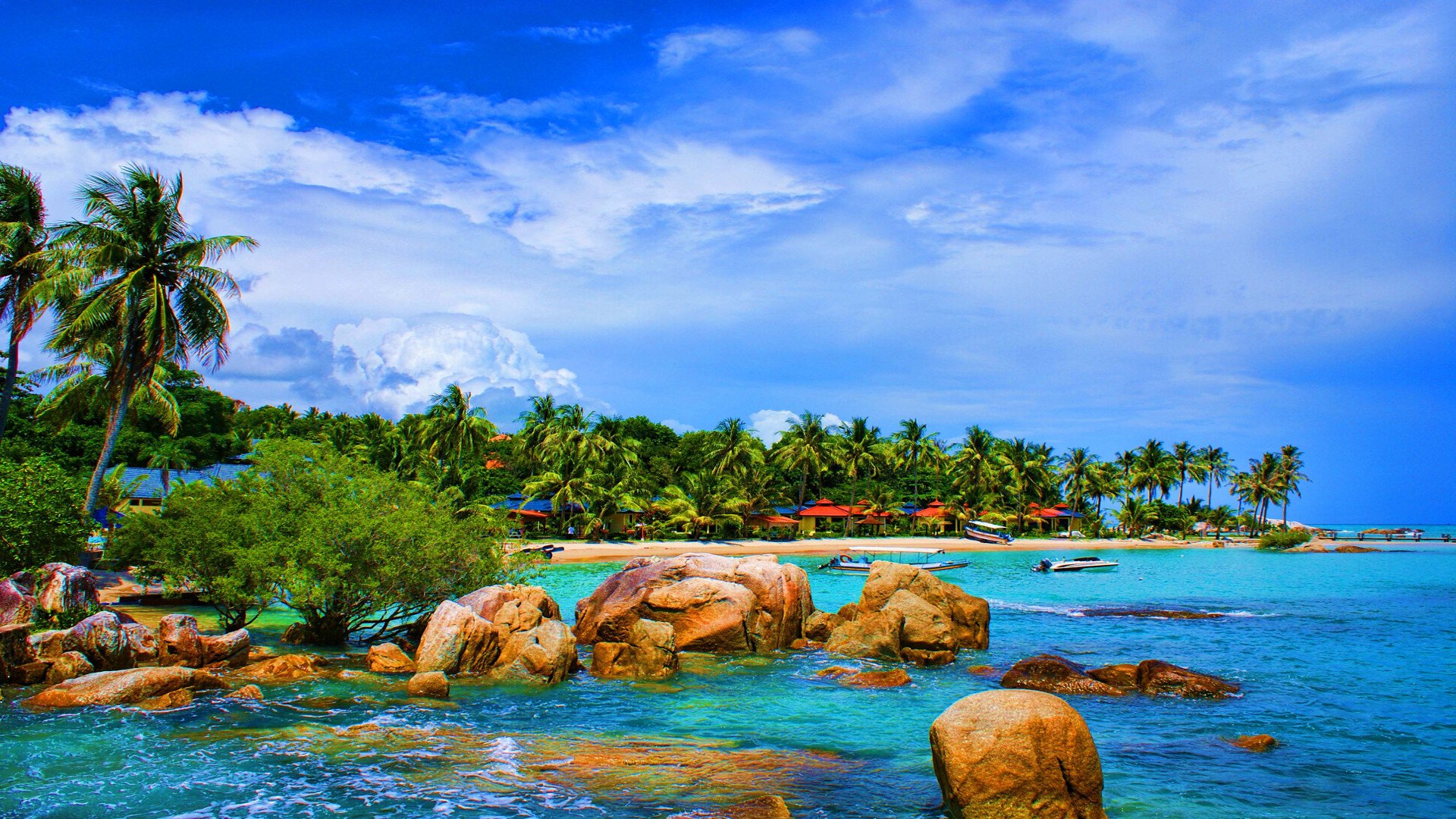 A landscape with beautiful nature on the sea dolphins swimming and such a clear skyA landscape with beautiful nature on the sea dolphins swimming and such a clear sky