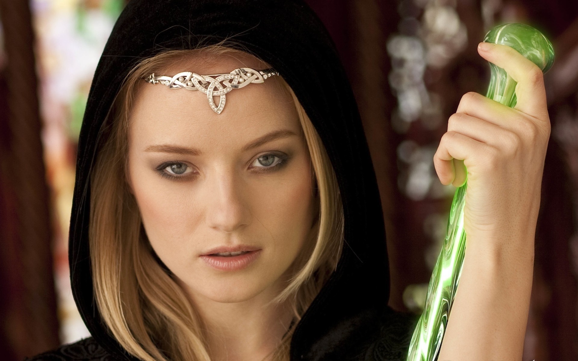 Emily blunt in an unusual board on a background of gray wallpaperEmily Blunt in an unusual board on a background of gray wallpaper