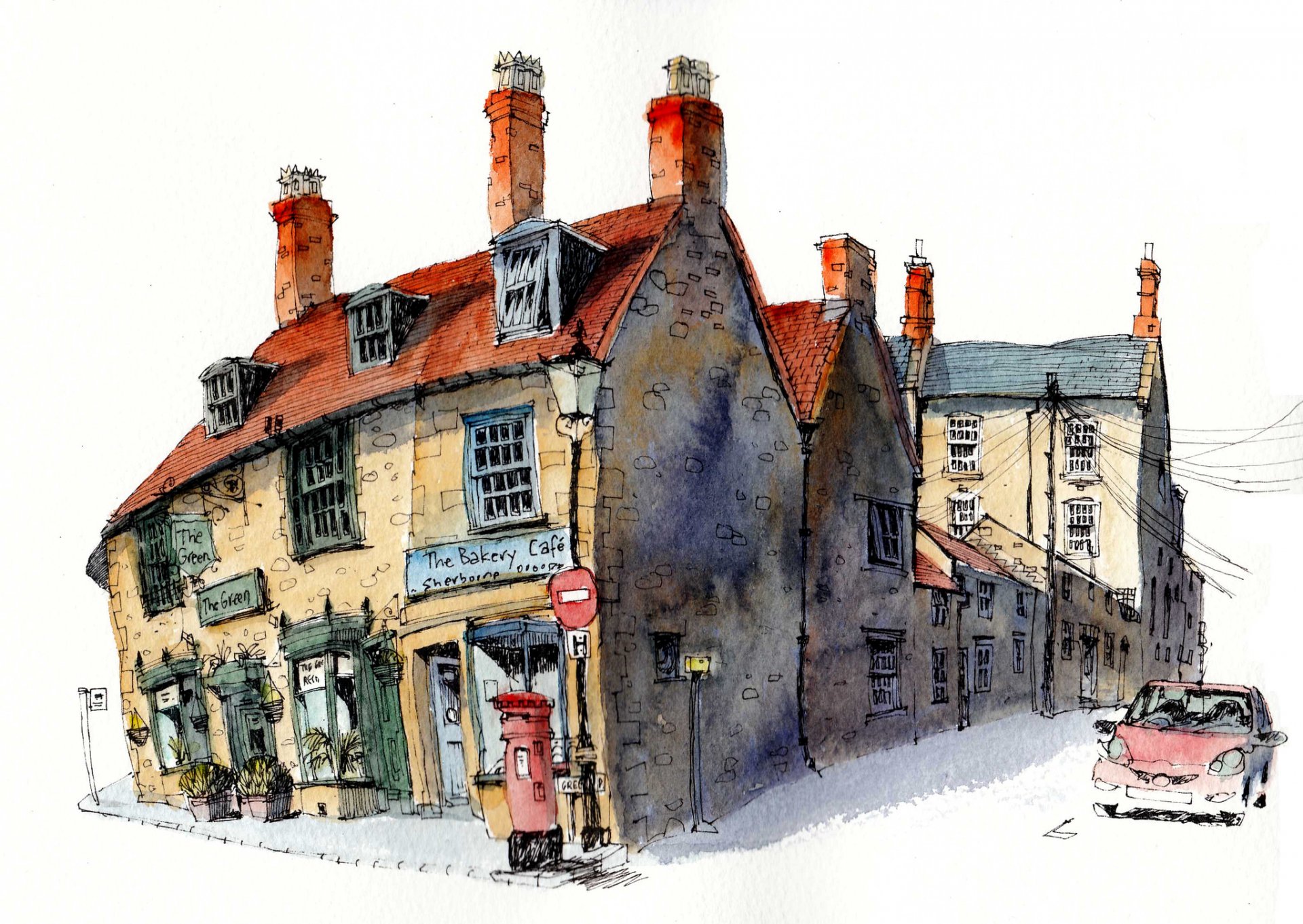 Autumn landscape with houses, trees against a cloudy skyAutumn landscape with houses, trees against a cloudy sky
