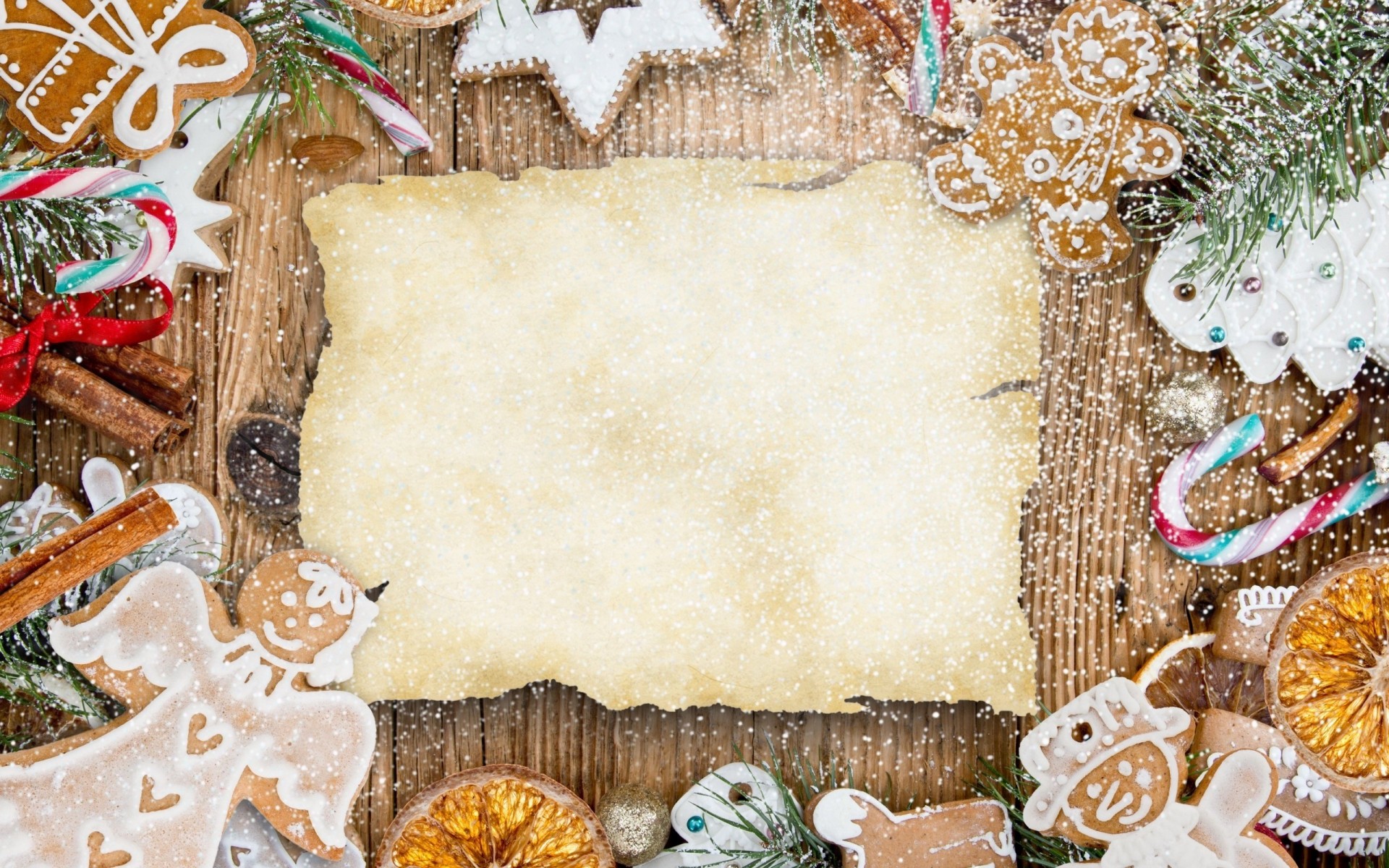 Christmas toys on a wooden table around a blank sheet for congratulationsChristmas toys on a wooden table around a blank sheet for congratulations