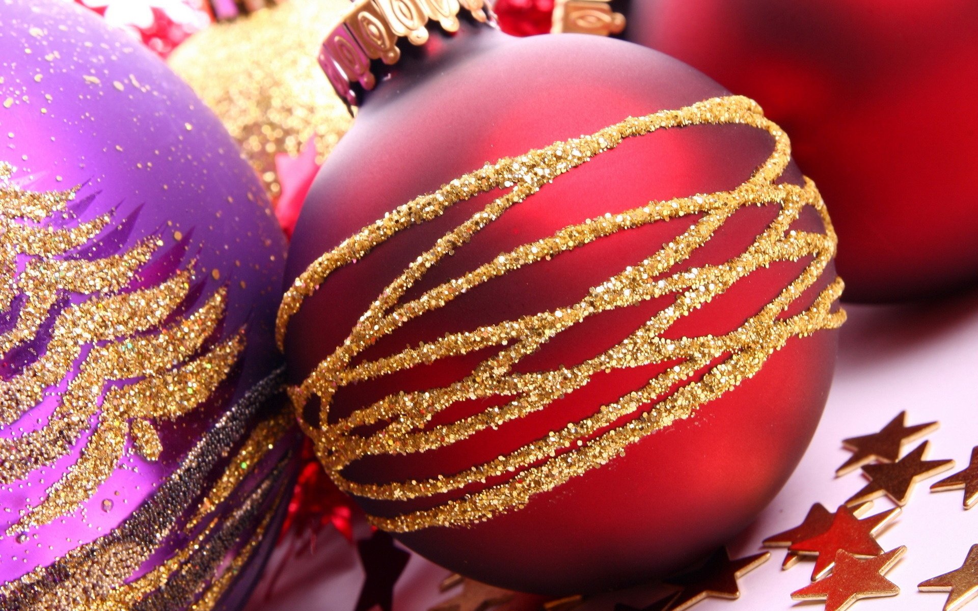 Several golden christmas balls with a twisted ribbonSeveral golden Christmas balls with a twisted ribbon