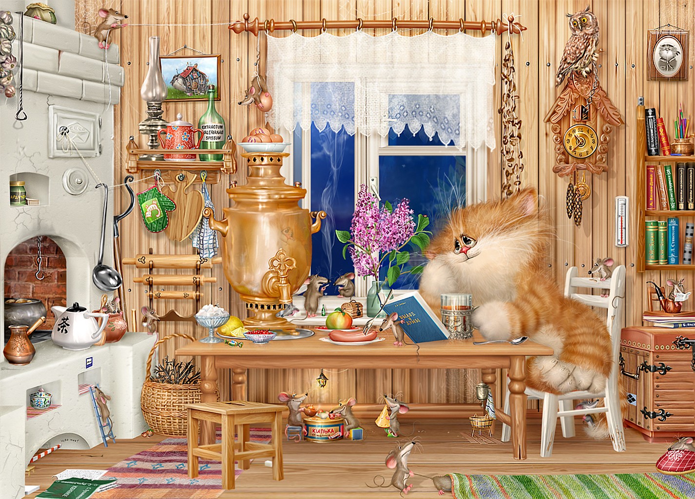 A brunette with pigtails is standing by the windowA brunette with pigtails is standing by the window
