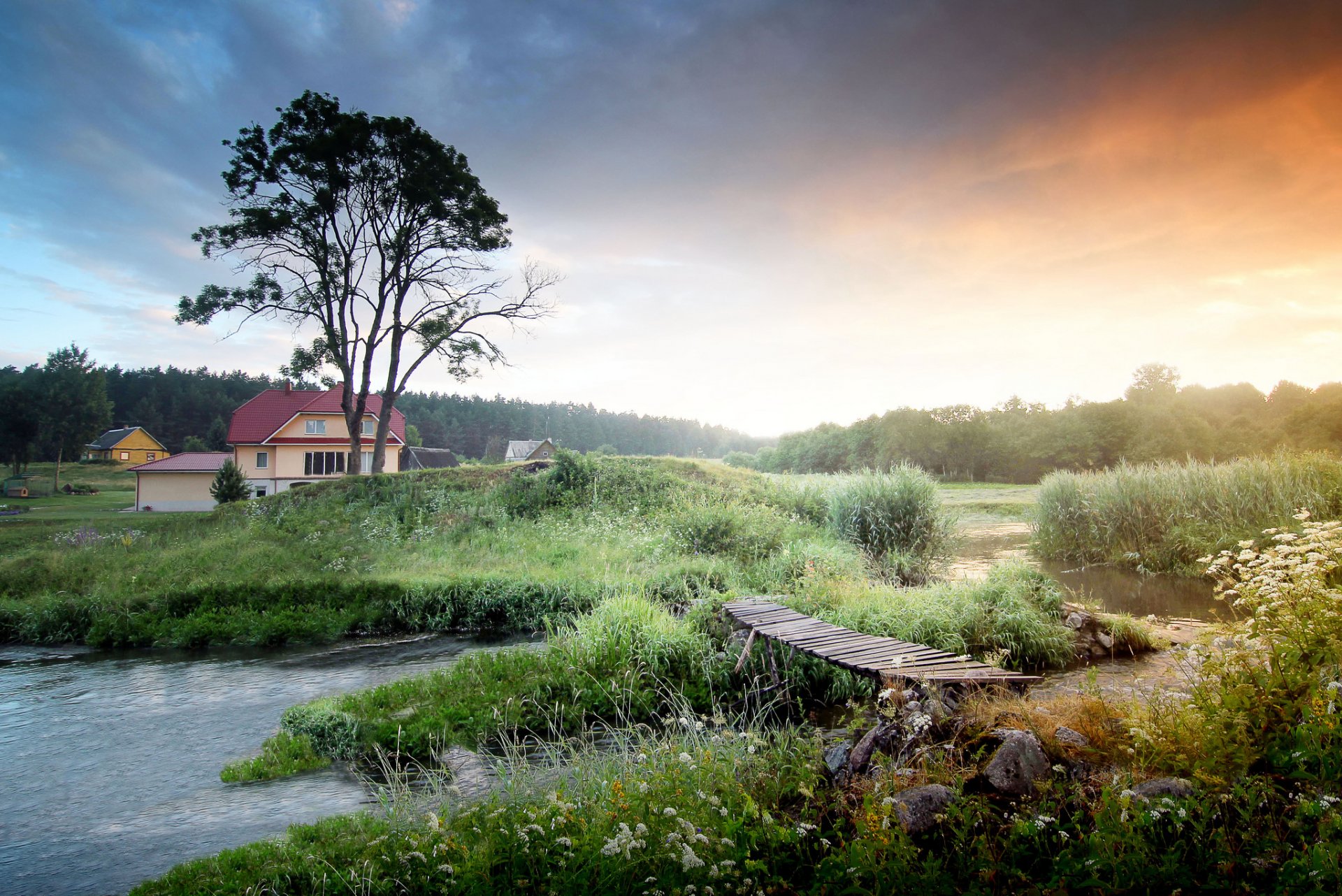 Morning at sunrise in the village