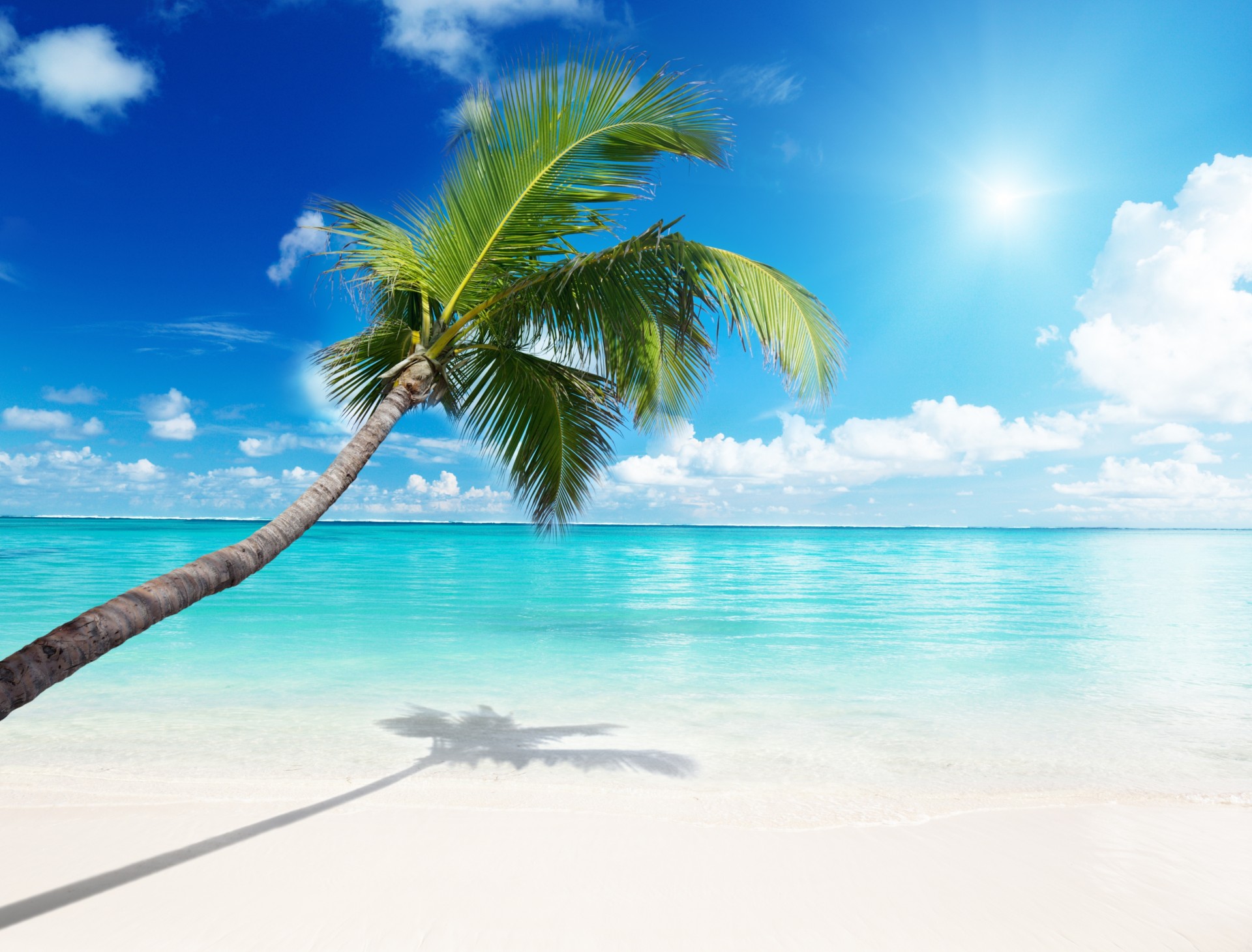 Summer beach and palm trees and sea