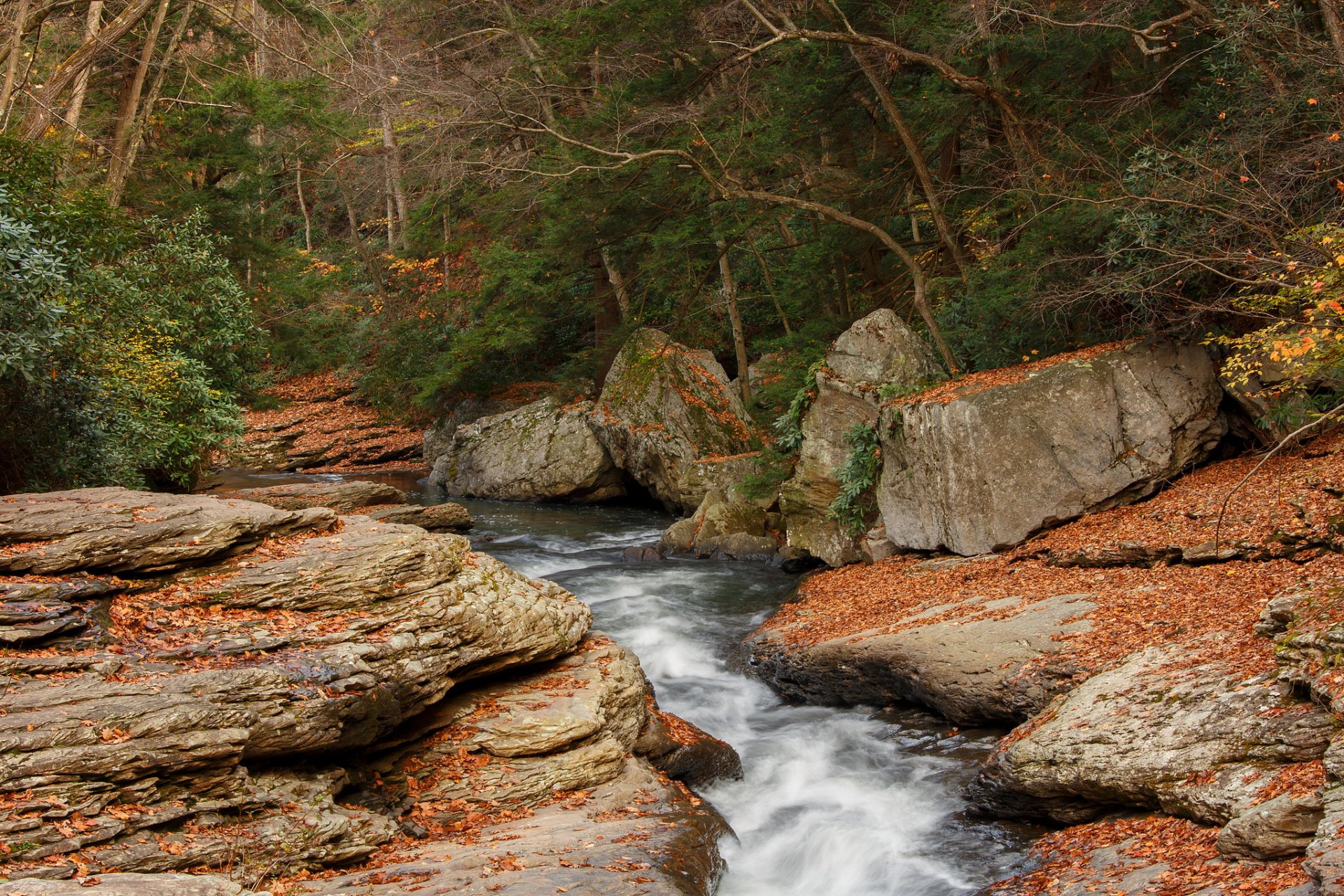 A sonorous stream flows through a beautiful waterfall among the stonesA sonorous stream flows through a beautiful waterfall among the stones