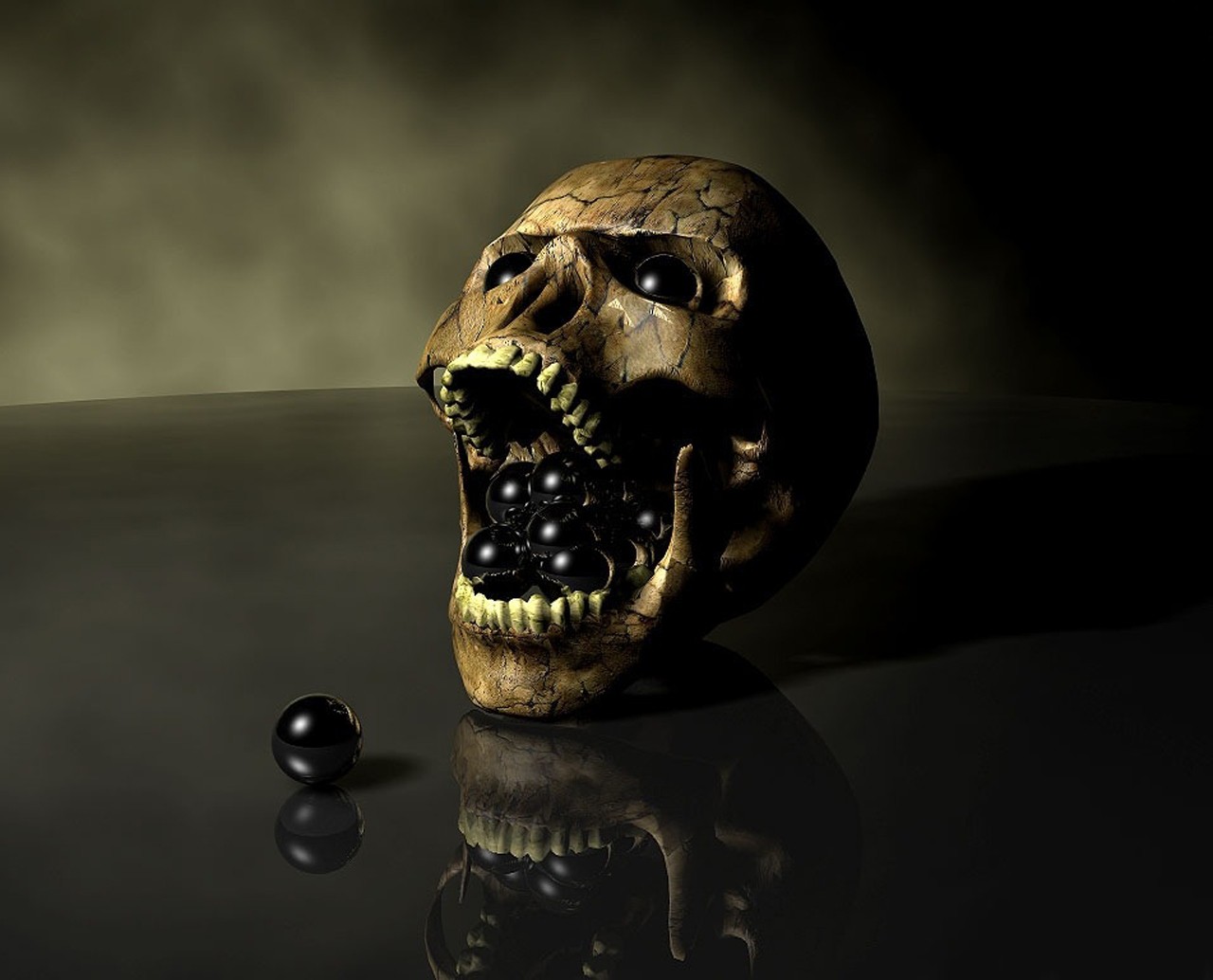 Three black balls surrounded by light of different colorsThree black balls surrounded by light of different colors